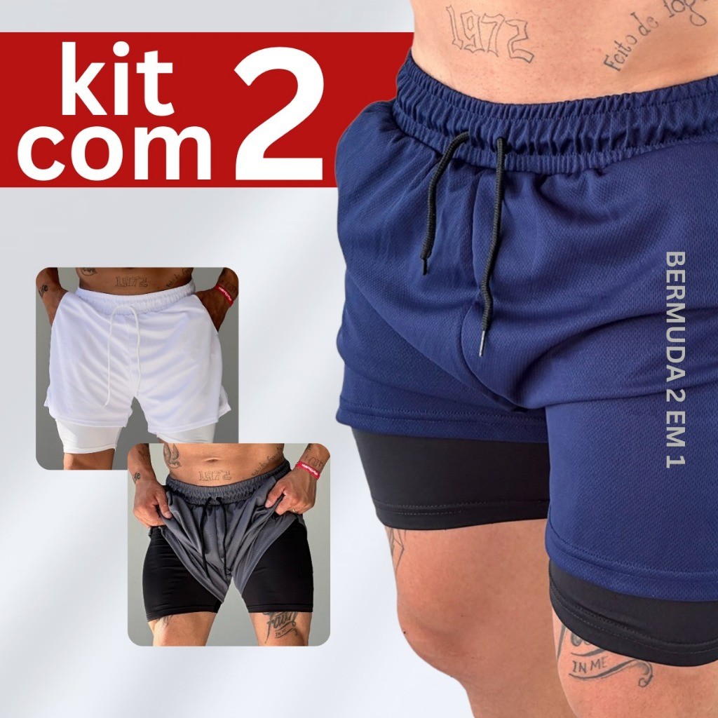 Kit 2 Shorts Kong Para Academia com Forro