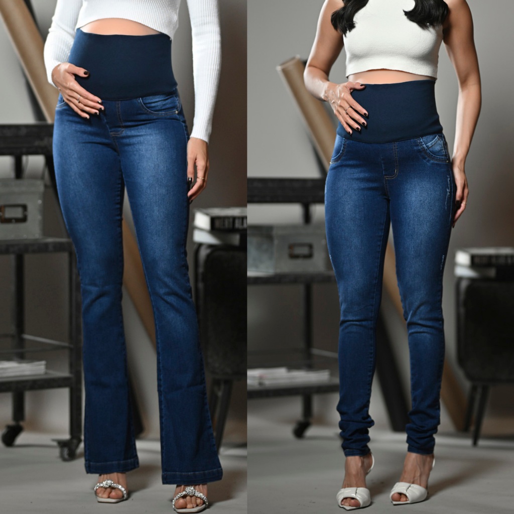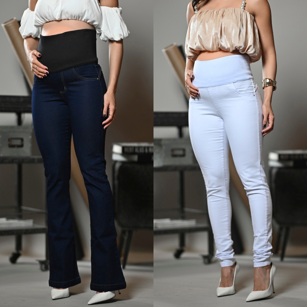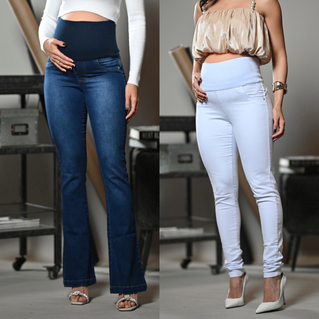 Kit 2 Calça Jeans Para Grávida C/Elastano Cós Adaptável Gestante