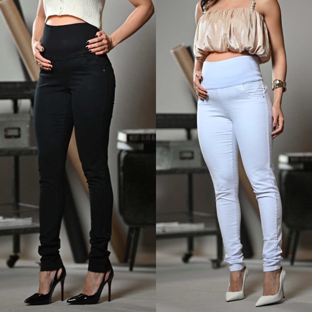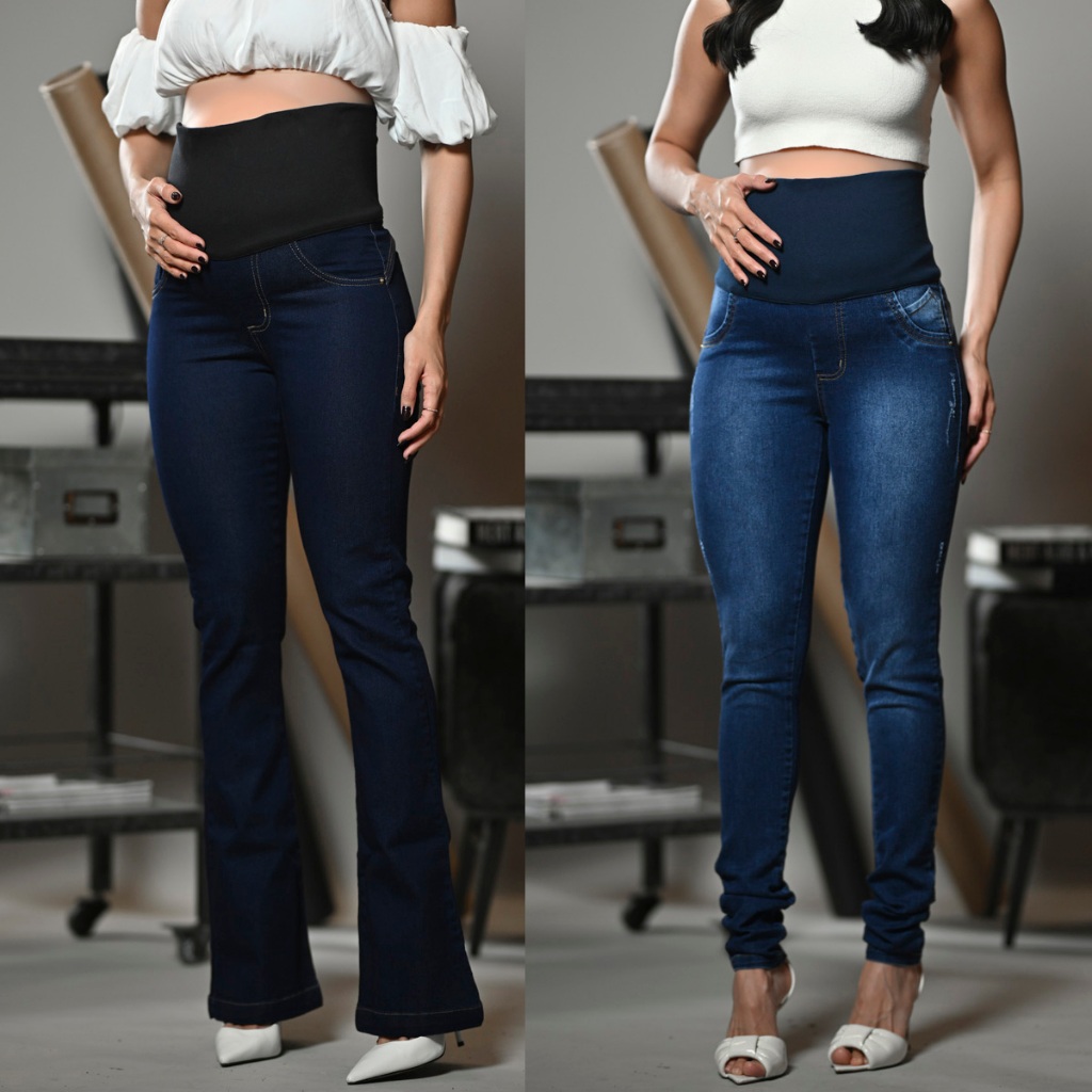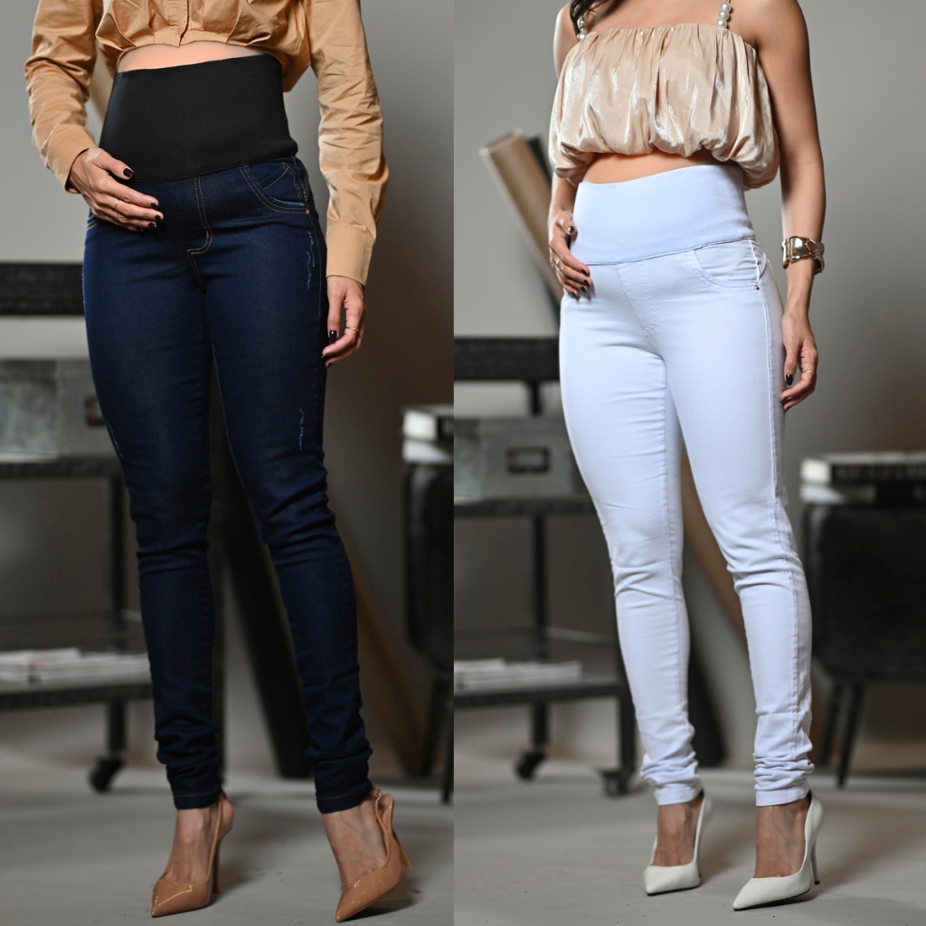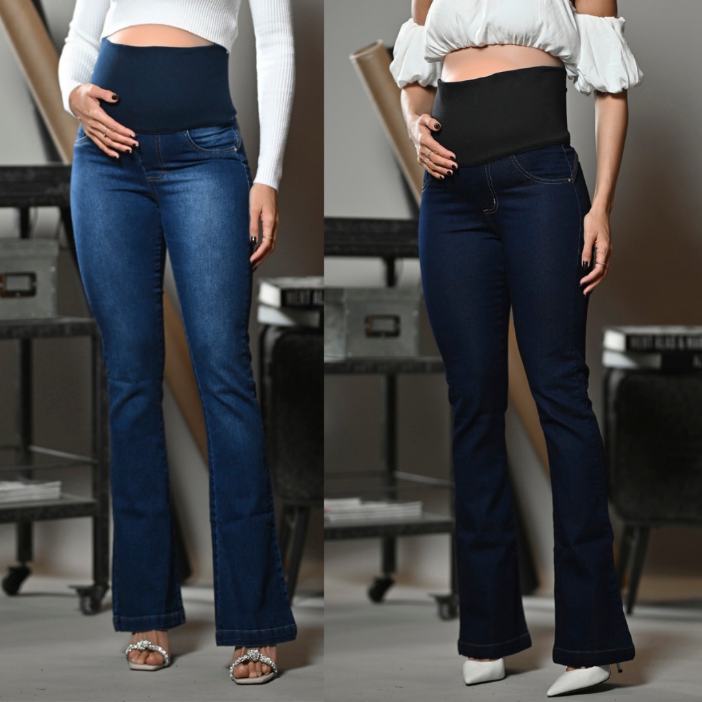 Kit 2 Calça Jeans Para Grávida C/Elastano Cós Adaptável Gestante