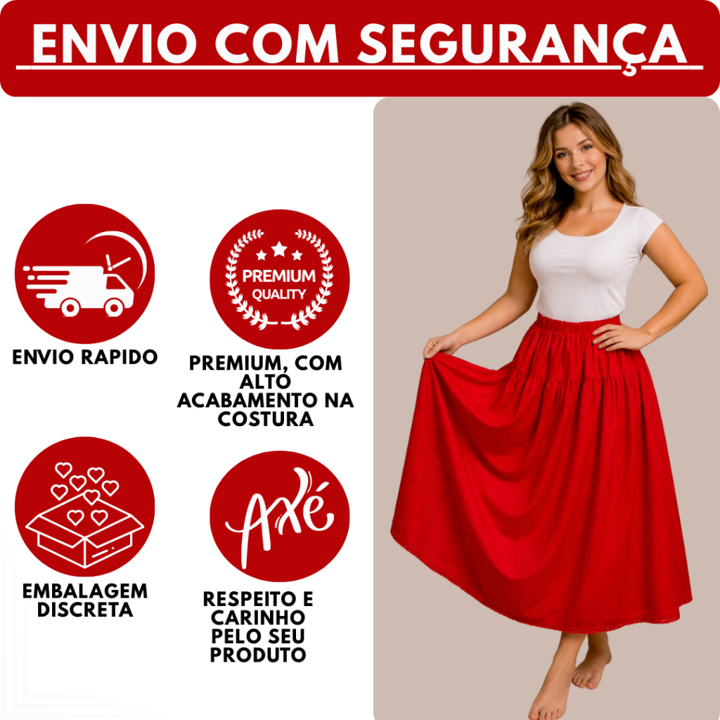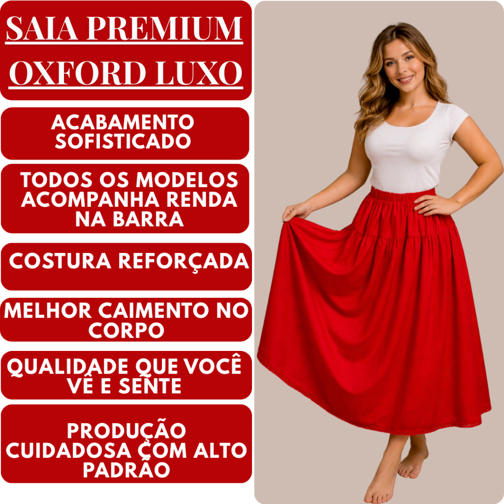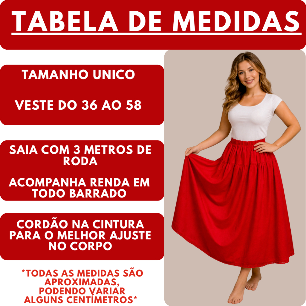 Saia Vermelha Umbanda e Candomble Oxford Pomba Gira Com Renda Premium 3.00 metros Roda 95cm Altura