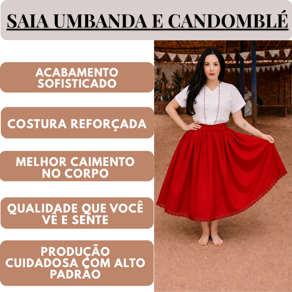 Saia Umbanda Candomblé Oxford Com Renda Premium Luxo 2.30M ou 3.00M de Roda Com 95cm de Altura