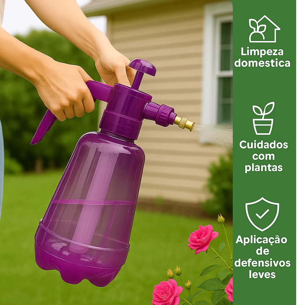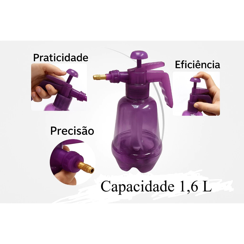 Pulverizador Manual de Pressão 1,6 Litros Jardim Plantas Limpeza Multiuso Borrifador Bomba Pressão