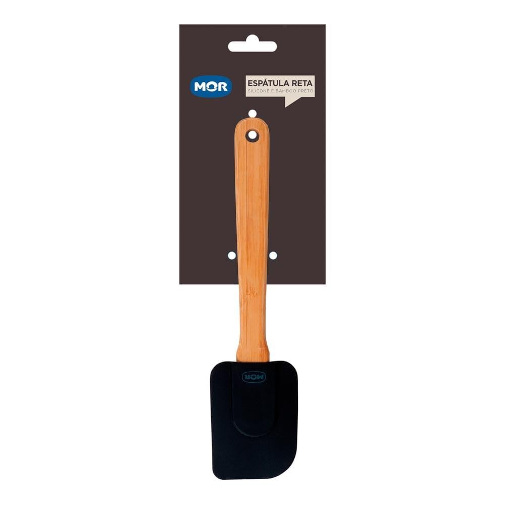 Espátula Reta Silicone e Bamboo Preto