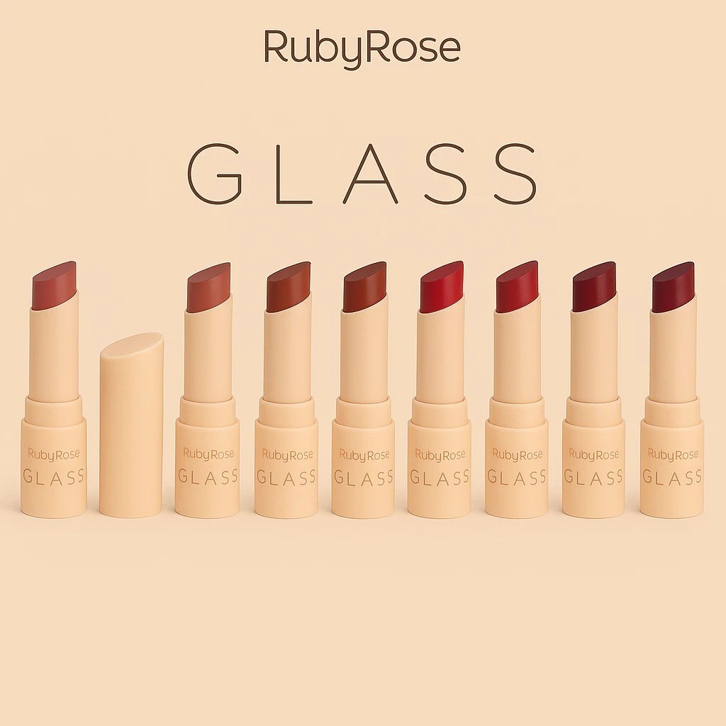 Ruby Rose Batom Bala Creamy - Cremoso Matte Glass, Acabamento Aveludado com 8 Cores Intensas de Alta cobertura FHB-567