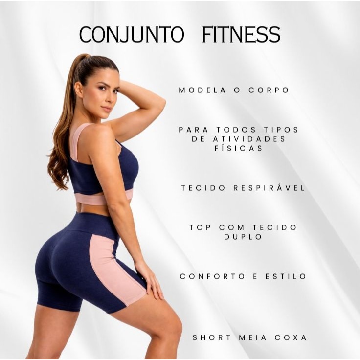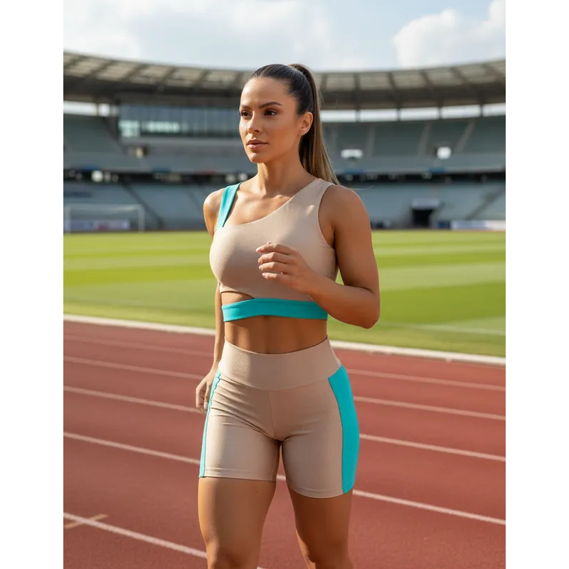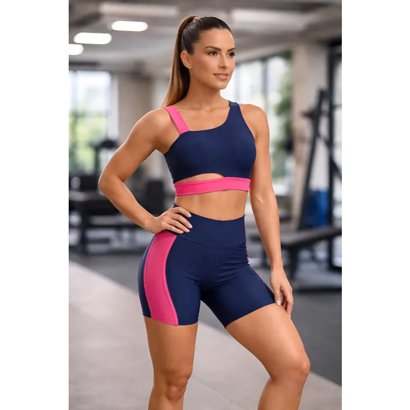 Conjunto Academia Fitness Short e Top Bicolor Cós Alto Faixa Lateral