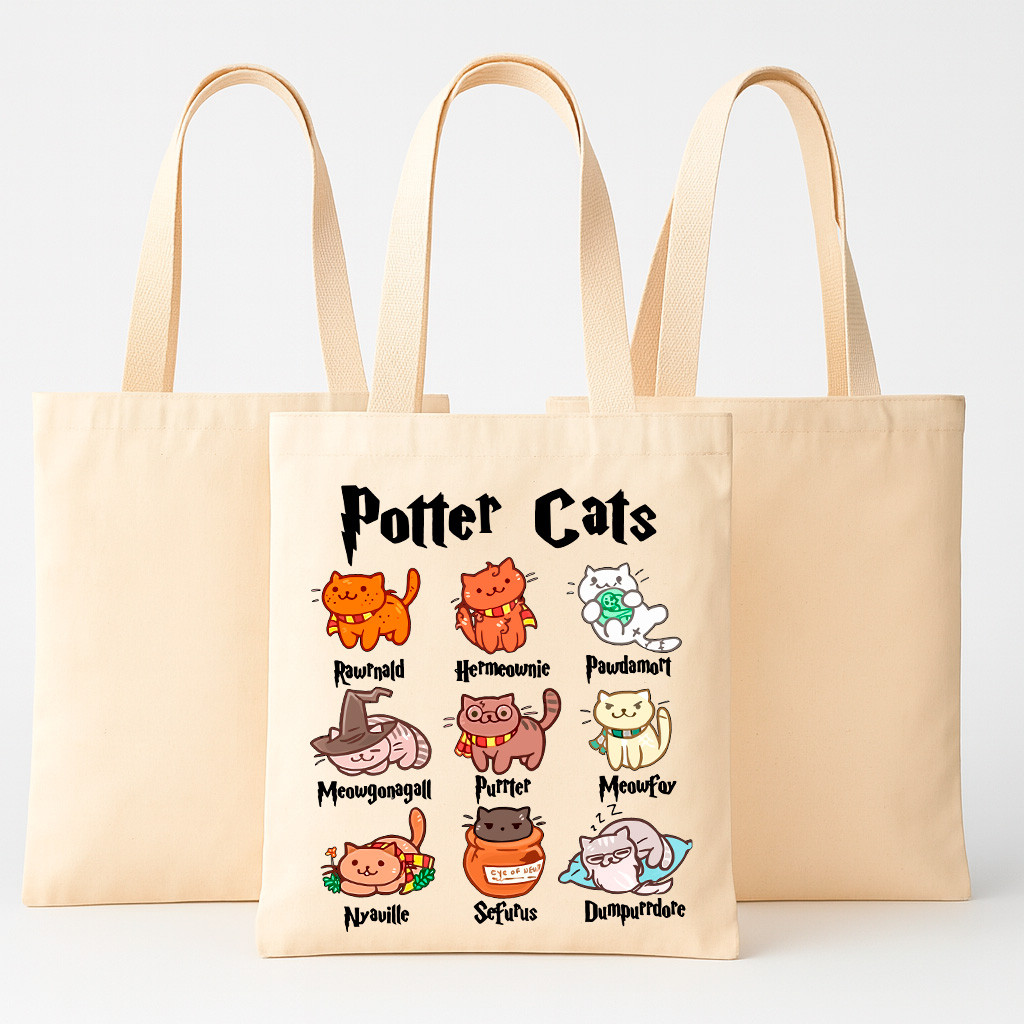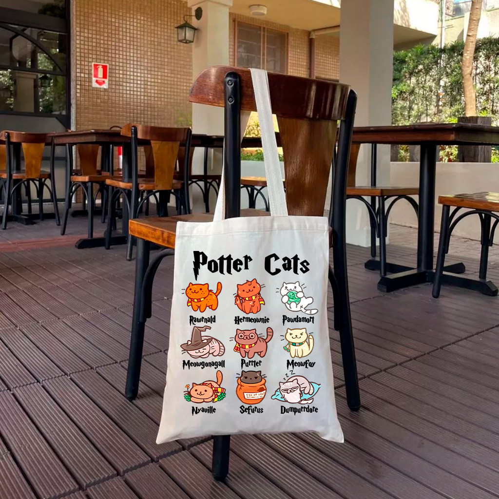 Bolsa Sacola Potter Cats Harry Potter Cat Gatos Ecobag 100% Algodão Cru Aesthetic Envio Imediato