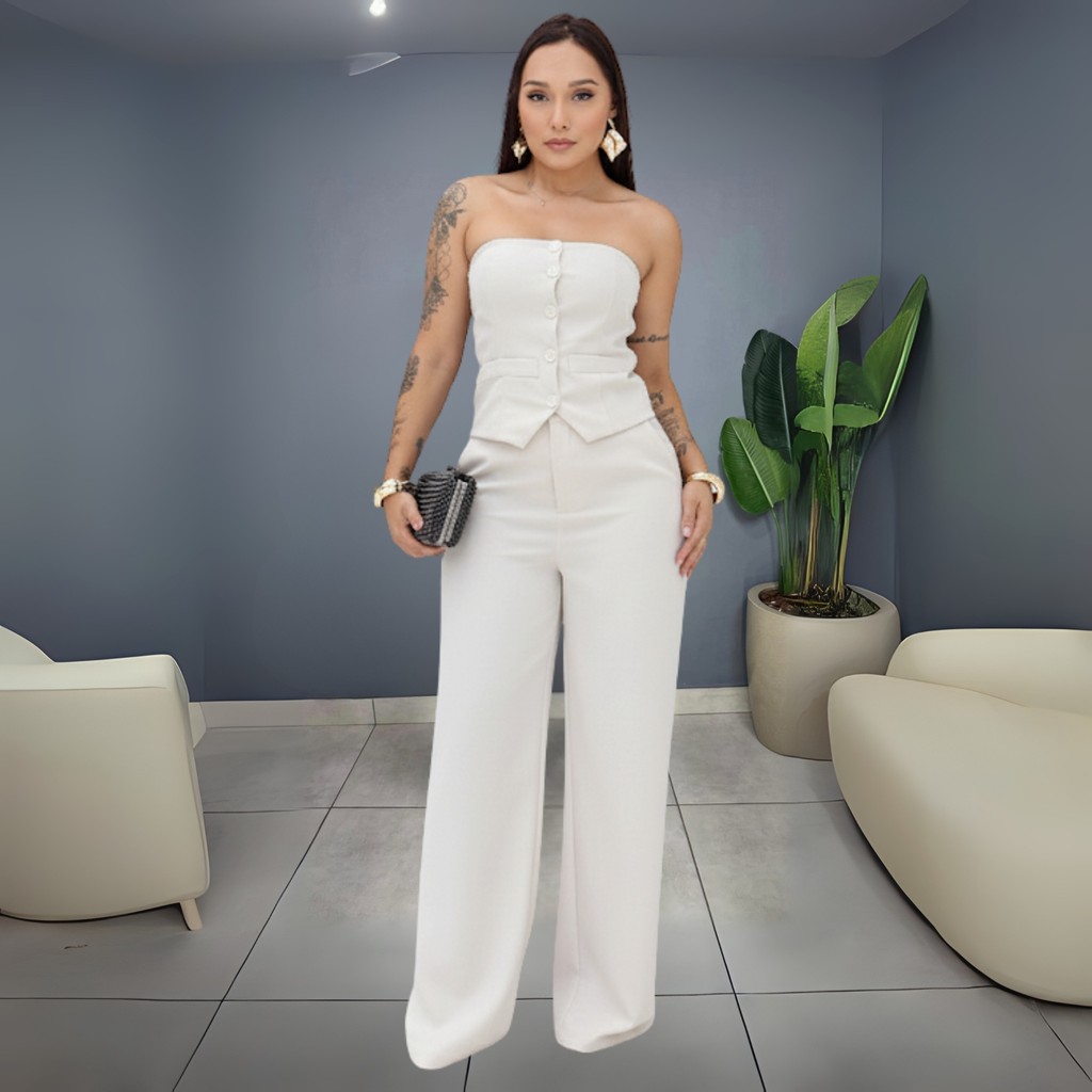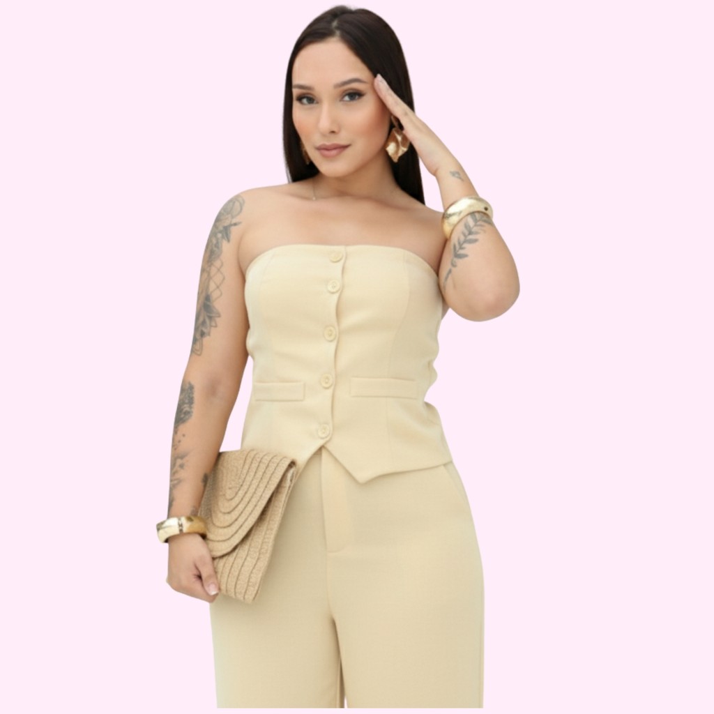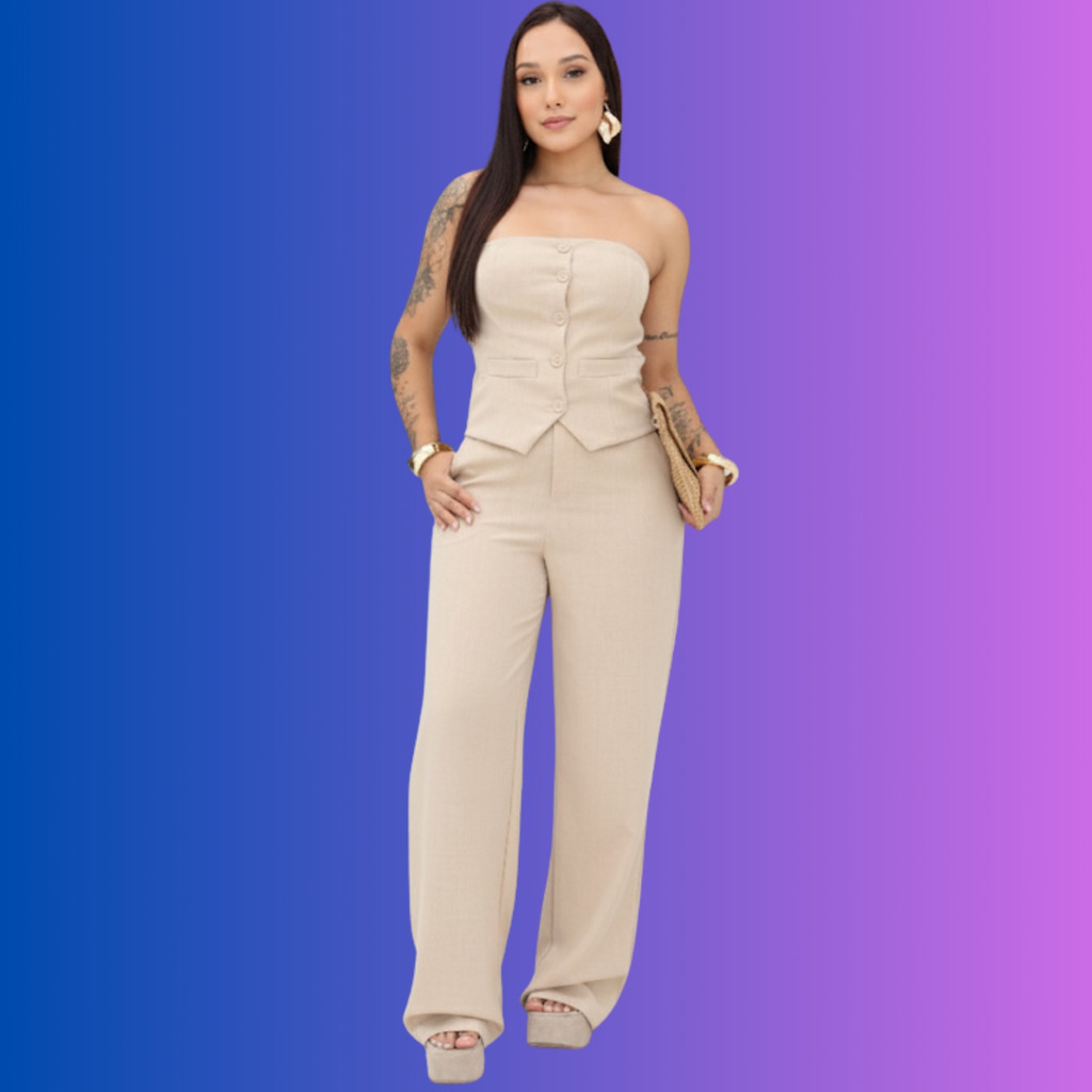 Conjunto Estilosa Feminino Tomara Que Caia com Calça Pantalona – Moda 2025 Elegante Premium