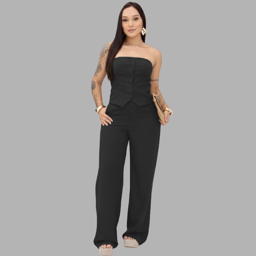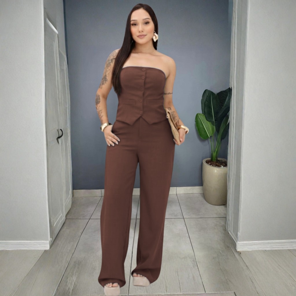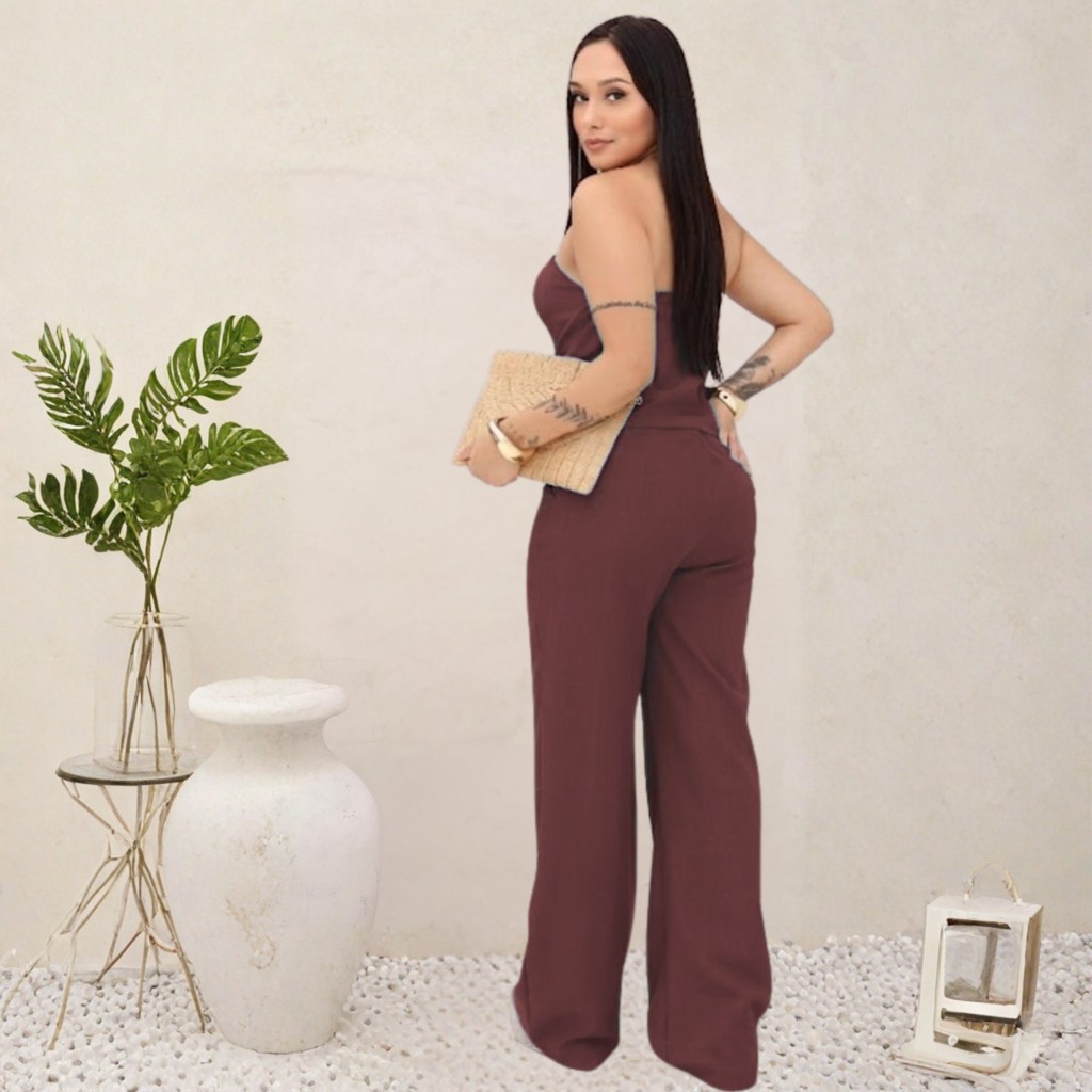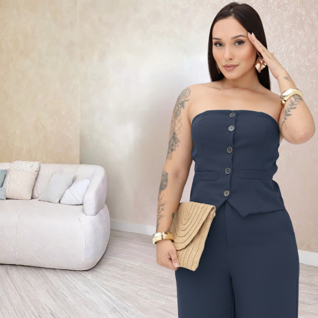 Conjunto Estilosa Feminino Tomara Que Caia com Calça Pantalona – Moda 2025 Elegante Premium