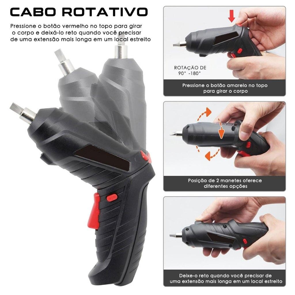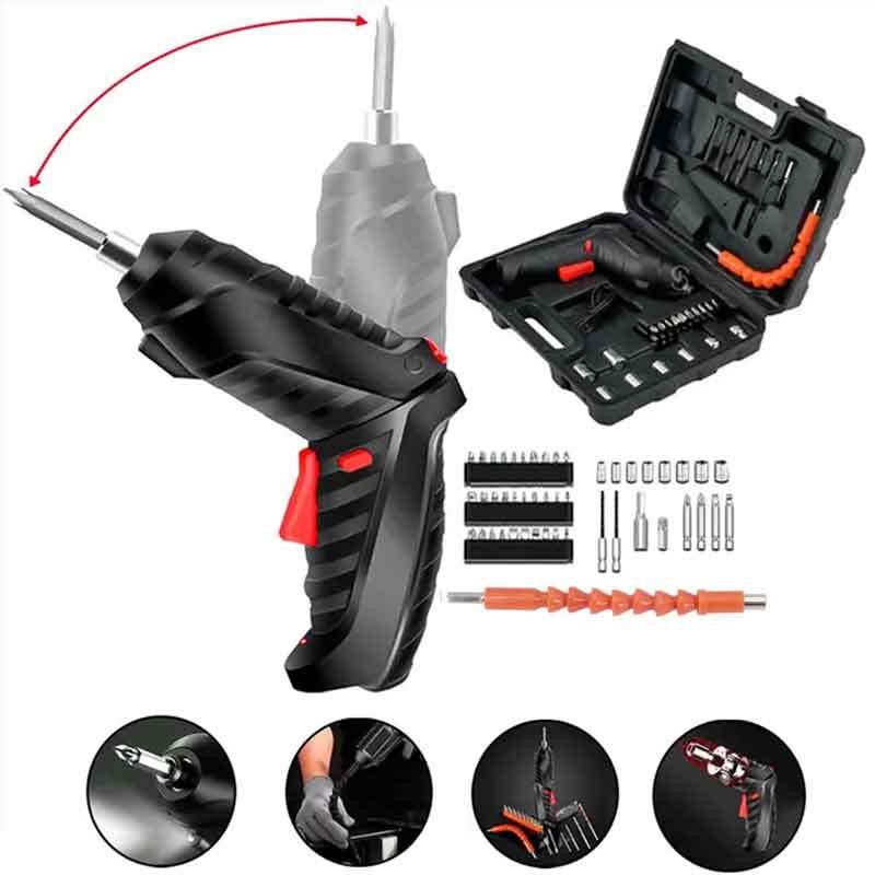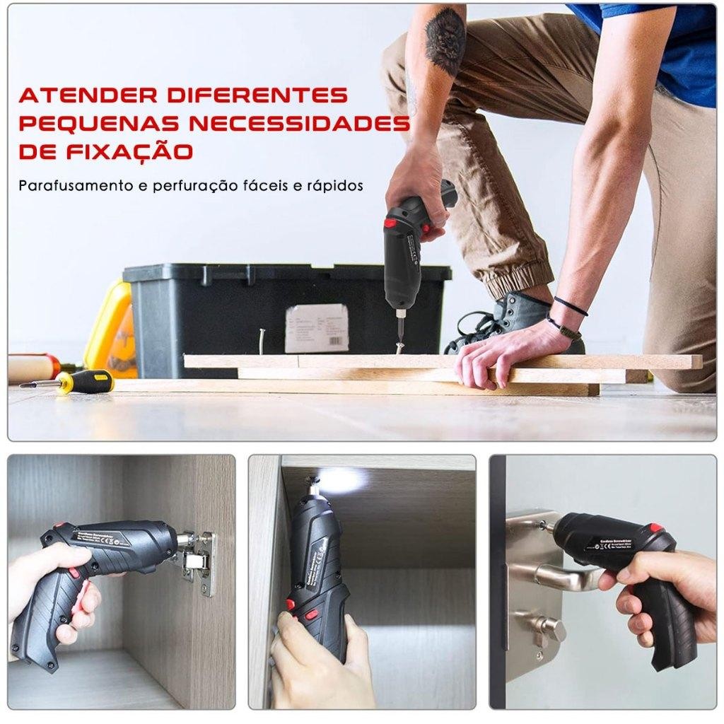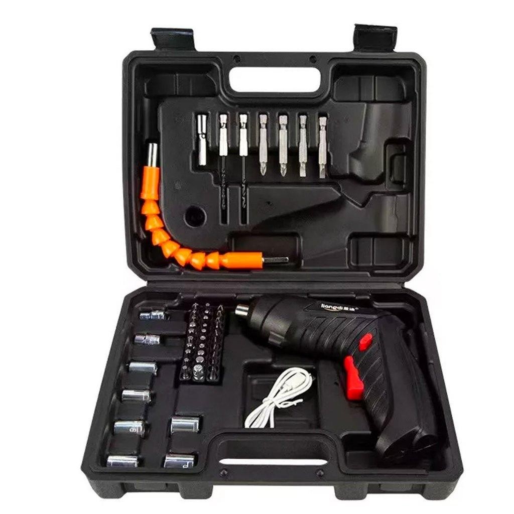Kit Ferramentas Sem Fio 48pcs Reparos Domésticos: Furadeira + Chave Elétrica Potentes, Carregamento Rápido USB + Estojo