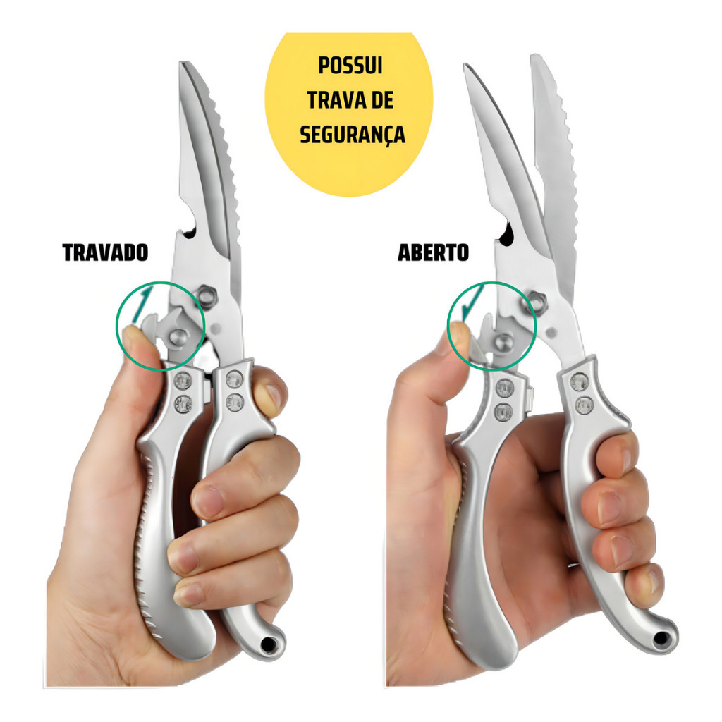 Tesoura Cozinha Aço Inoxidável Profissional Corte Frango Lâmina Afiado Cabo Ergonômico Original