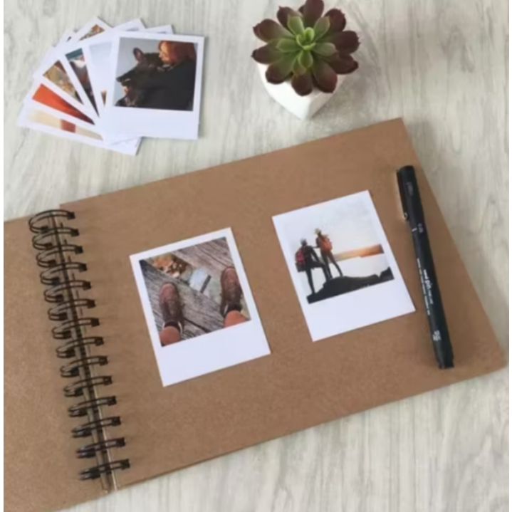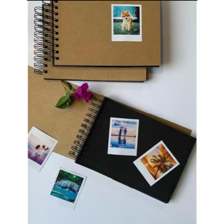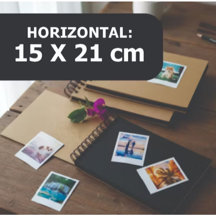 Scrapbook KRAFT Álbum de Fotos A5 Capa Dura e Folha Grossa (Caderno Recordações, Livro Memórias, Polaroid, colar fotos)
