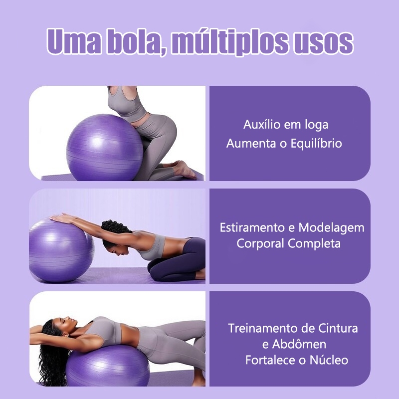 Bola de Pilates 65/75cm grande Fisioterapia Resistência 300kg Antiestoura + Bomba Ar Cor aleatória
