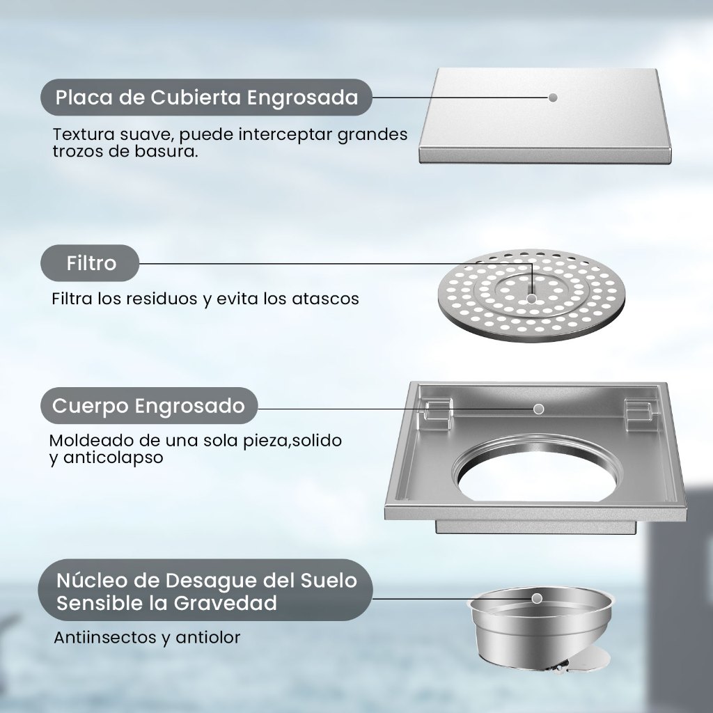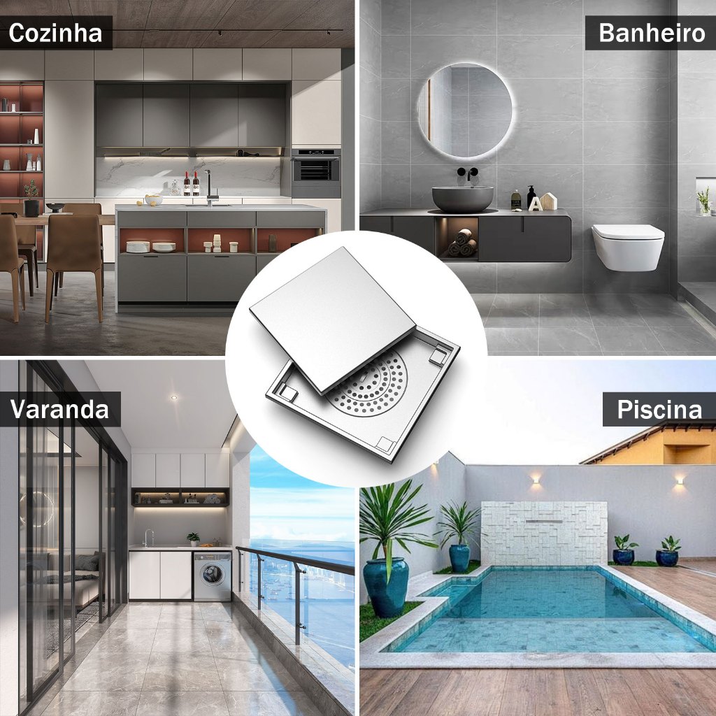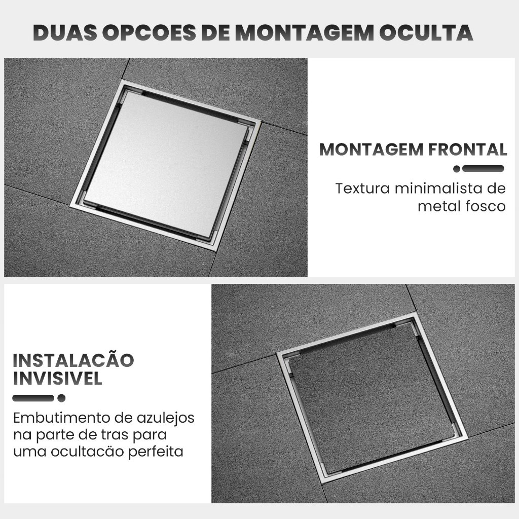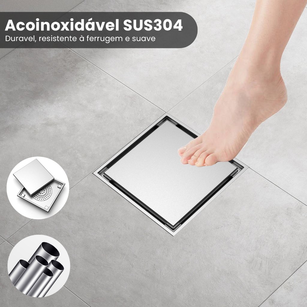Ralo Inox Square Tampa Oculta Invisivel 15x15 Nao É Pvc Antiodor Válvula Anti Inseto