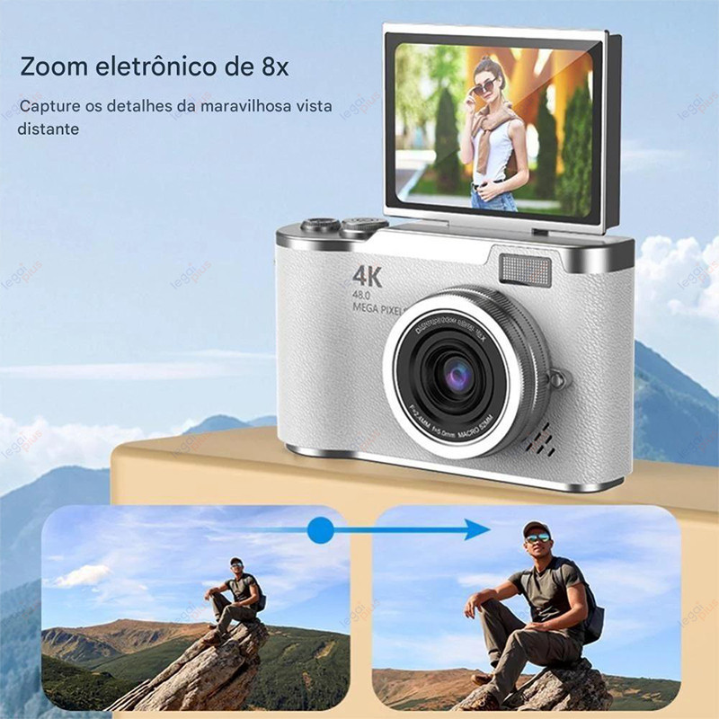 Câmera Compacta 4K com Sensor CCD 48MP Zoom 8x e Tela Flip Autofoco para Fotografia Diária