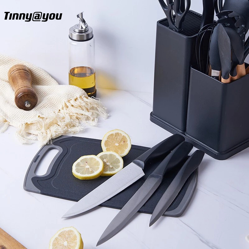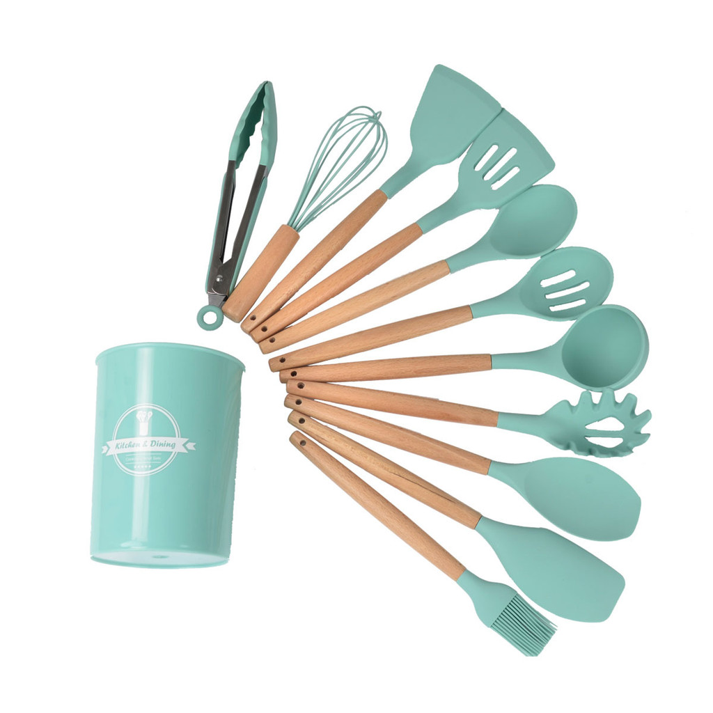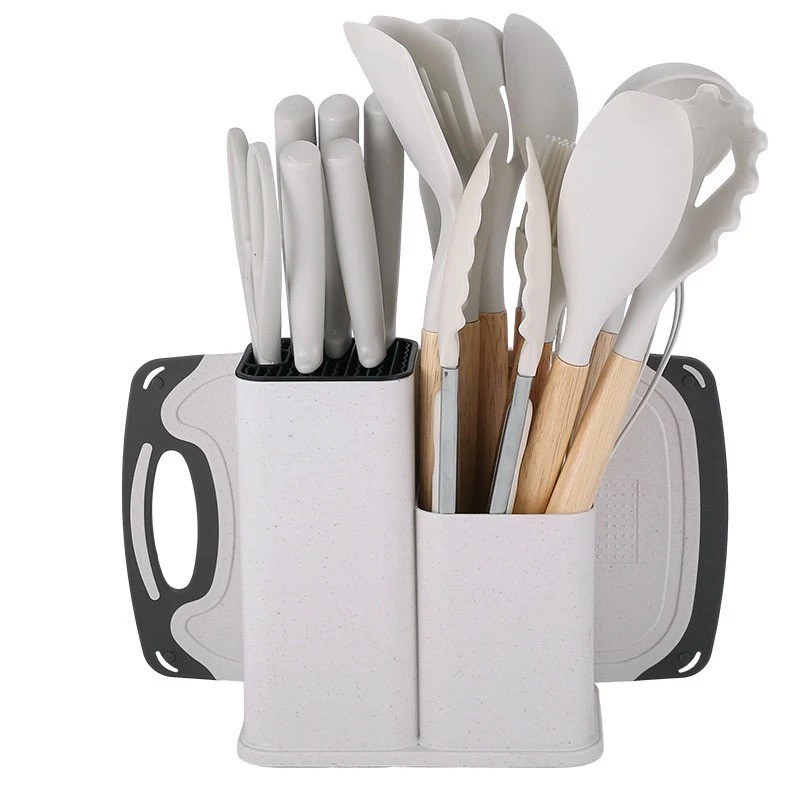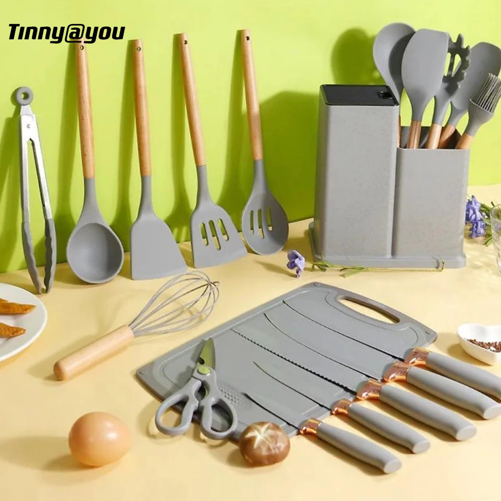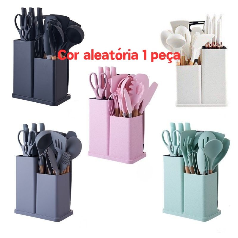 Kit Utensílios de Cozinha 5/12/19 Peças • Silicone com Cabo de Madeira • Completo e Resistente