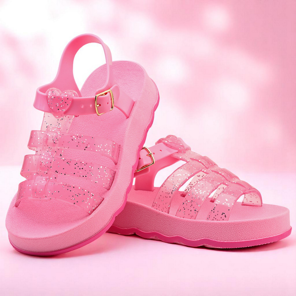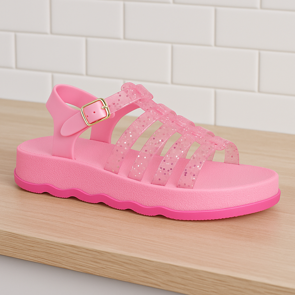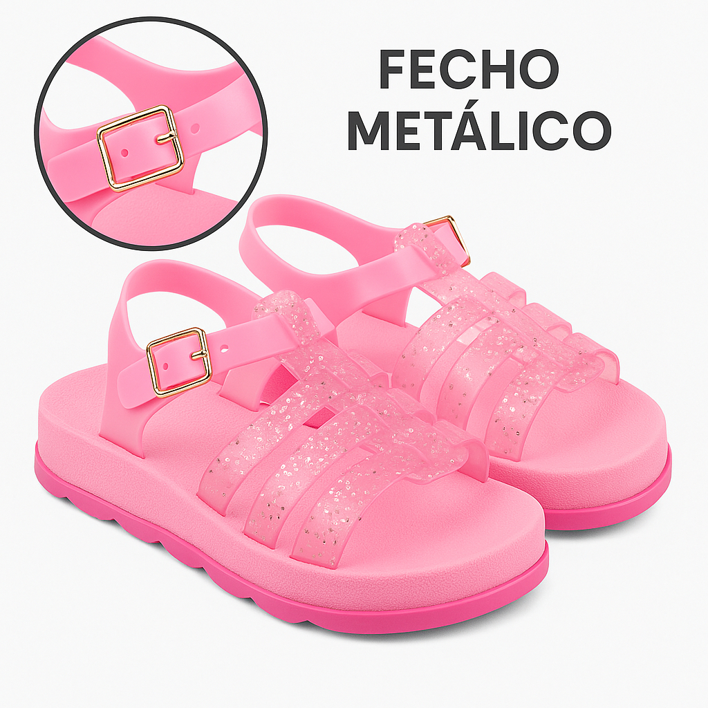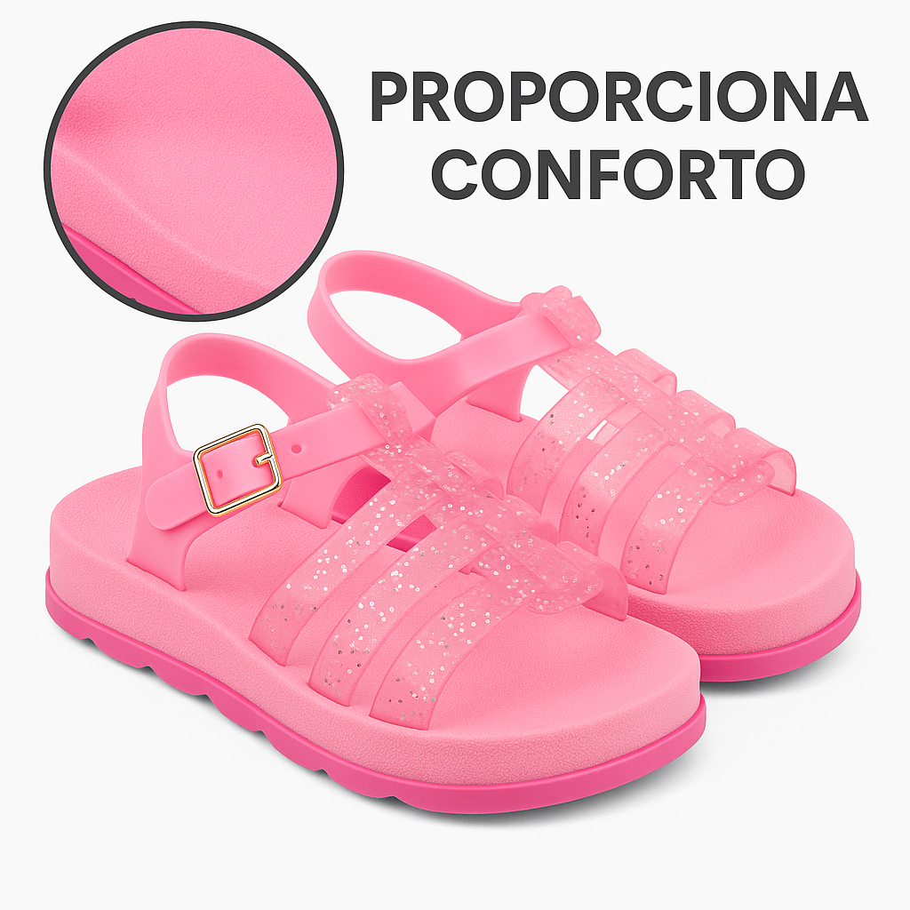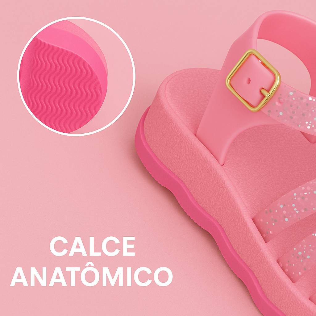 Sandália Brilhante Cor De rosa BB delicada Confortável Calce Fácil e De Ótima Qualidade