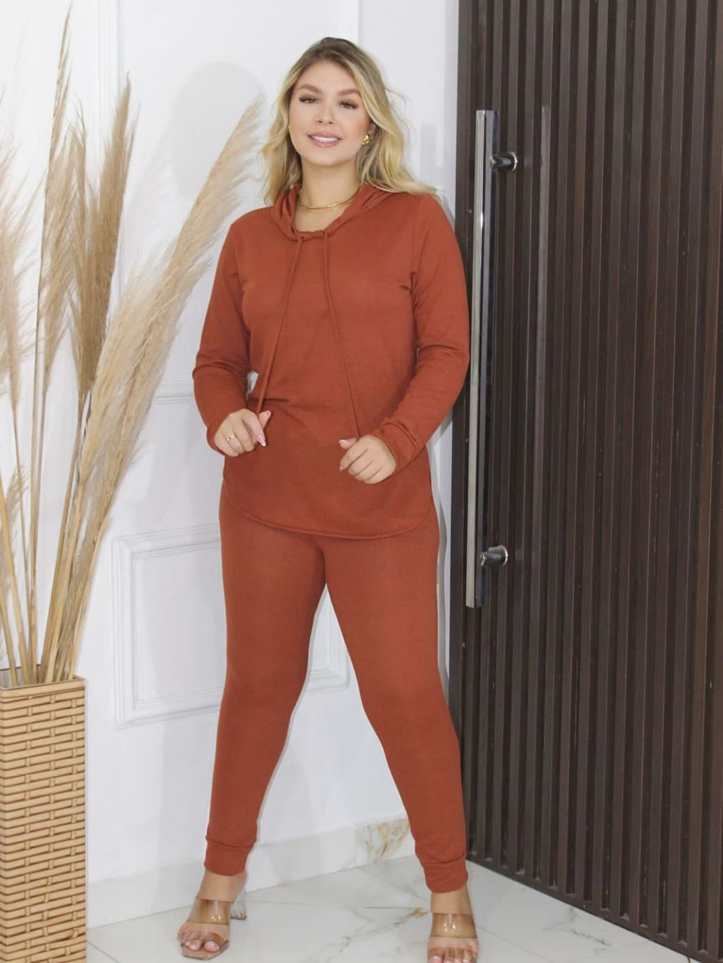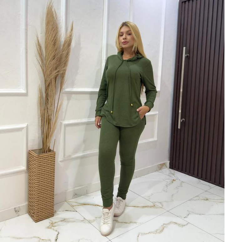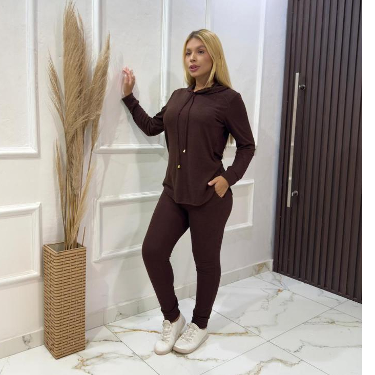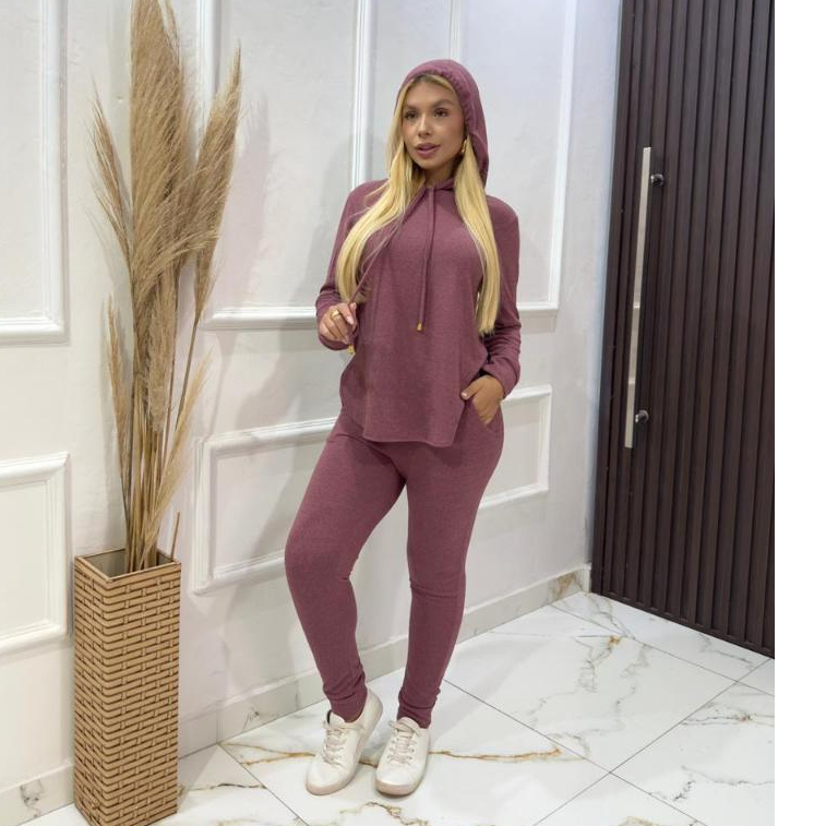 Conjunto Lanzinha Feminino Inverno Calça com Bolso e Blusa com Capuz Lanzinha Frio Quentinho Abrigo 2 peças