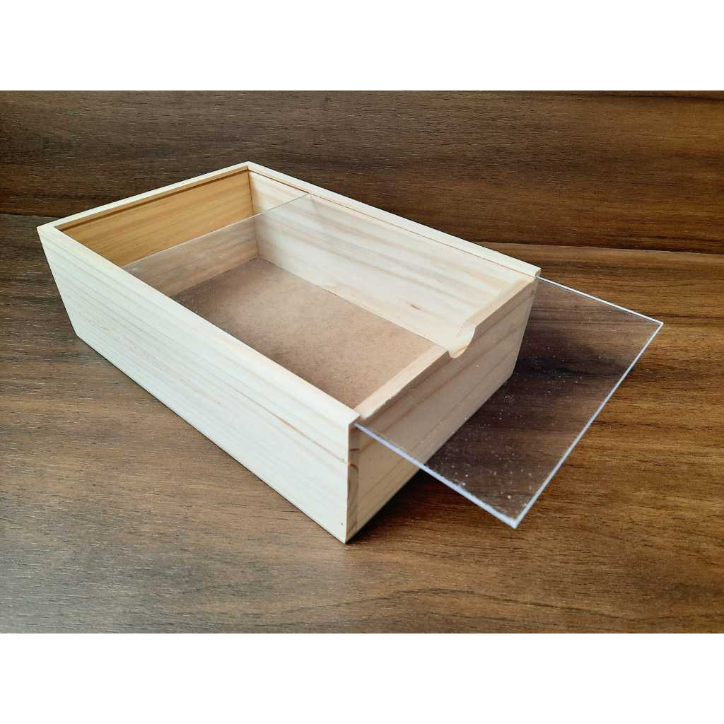 ENVIO IMEDIATO Caixa para Presente em Madeira Pinus com tampa acrílico transparente tipo estojo