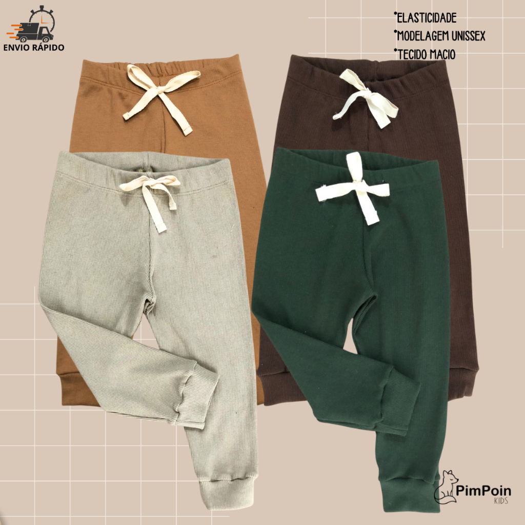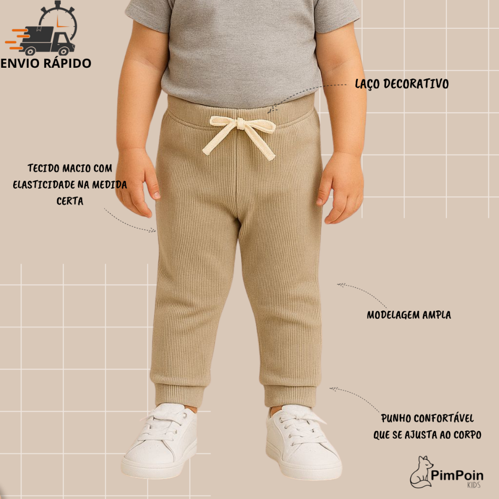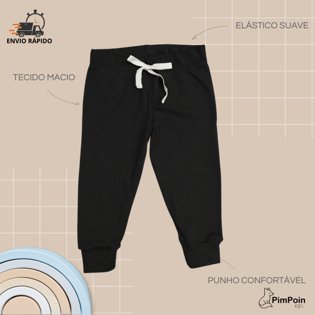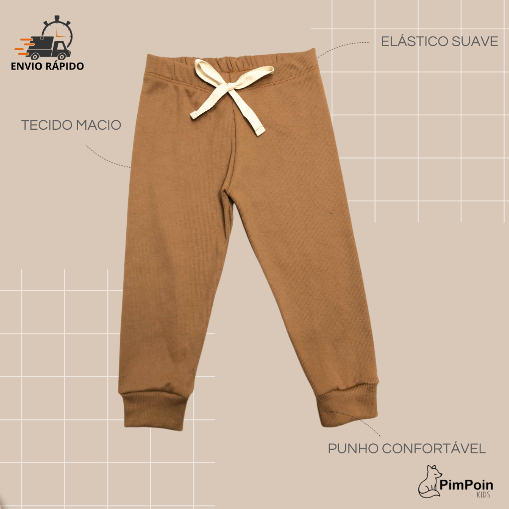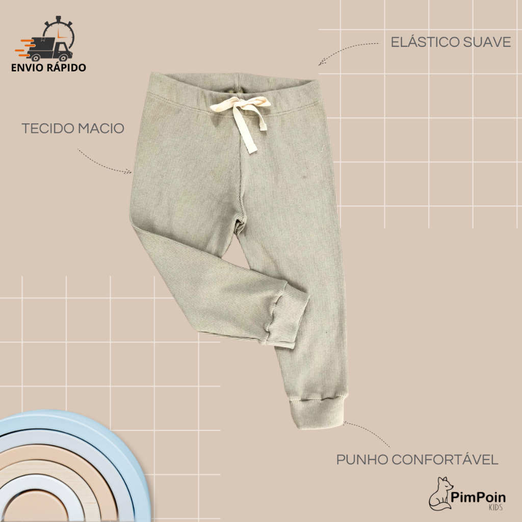 Calça Jogger Canelada Infantil |Unissex| Algodão Premium com elastano | P bebê ao 3 Anos -verão