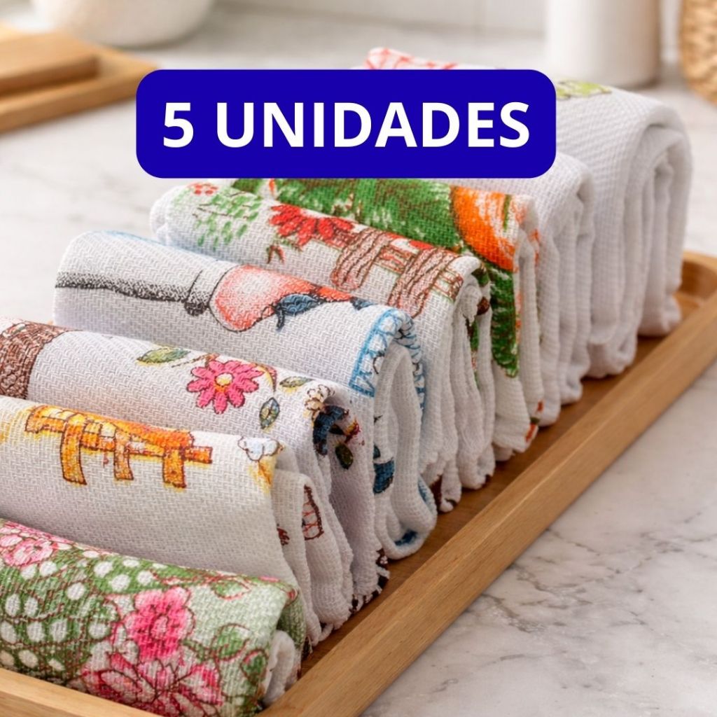 KIT PANO DE PRATO GRANDE 75cm x 45cm 100% Algodão estampas variadas