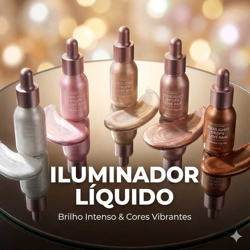 Iluminador Líquido Lové Rain - Brilho Intenso para Maçã do Rosto, Nariz e Arco dos Lábios-LR5032