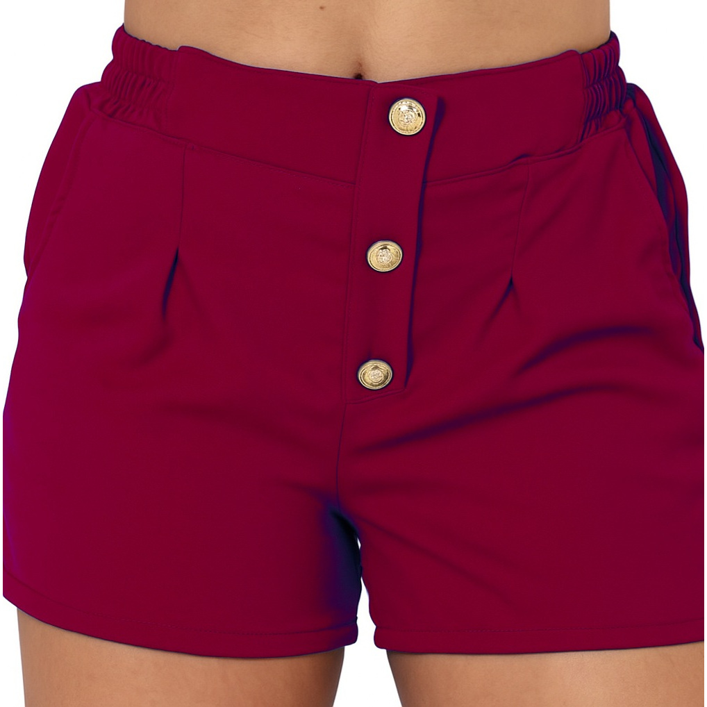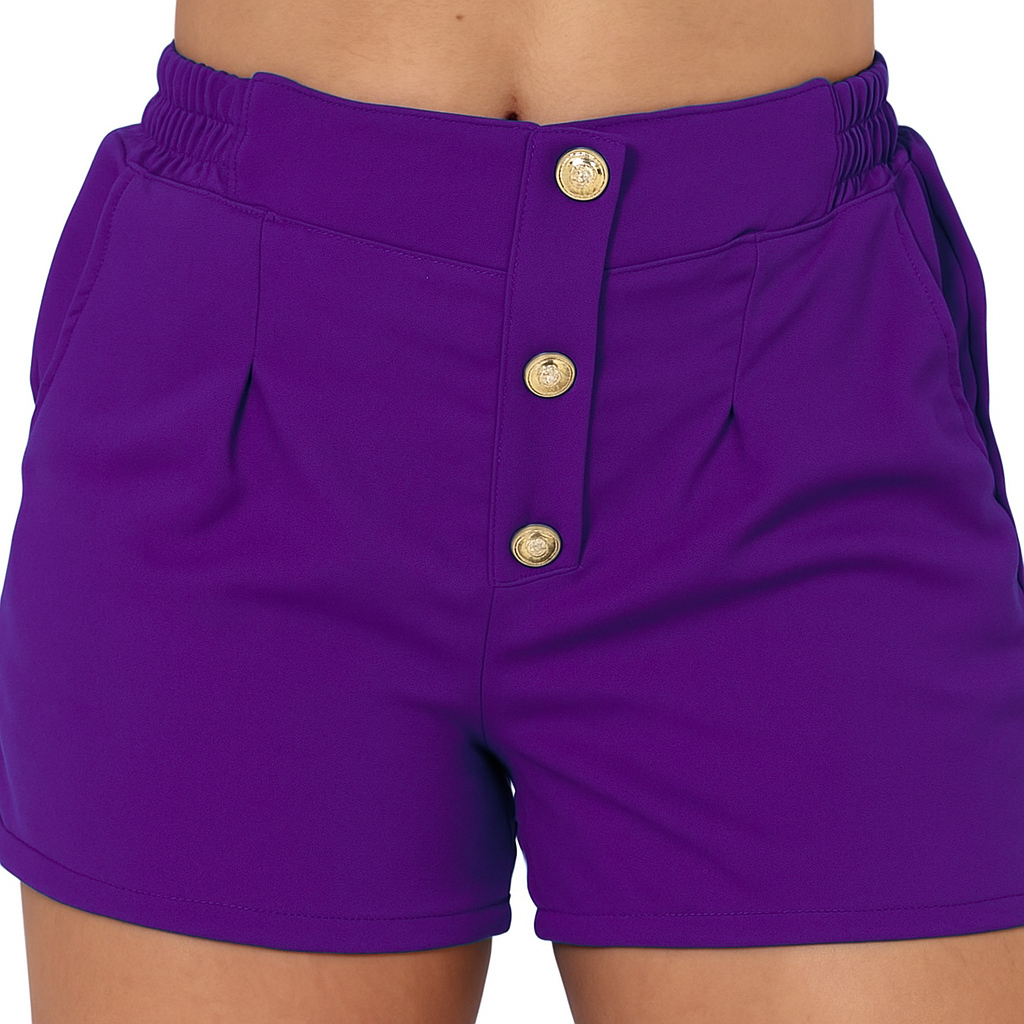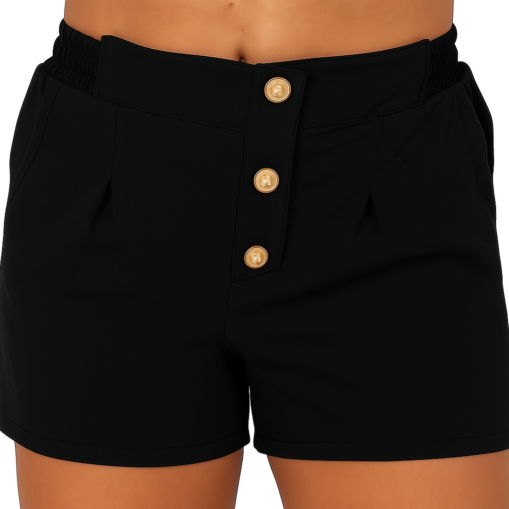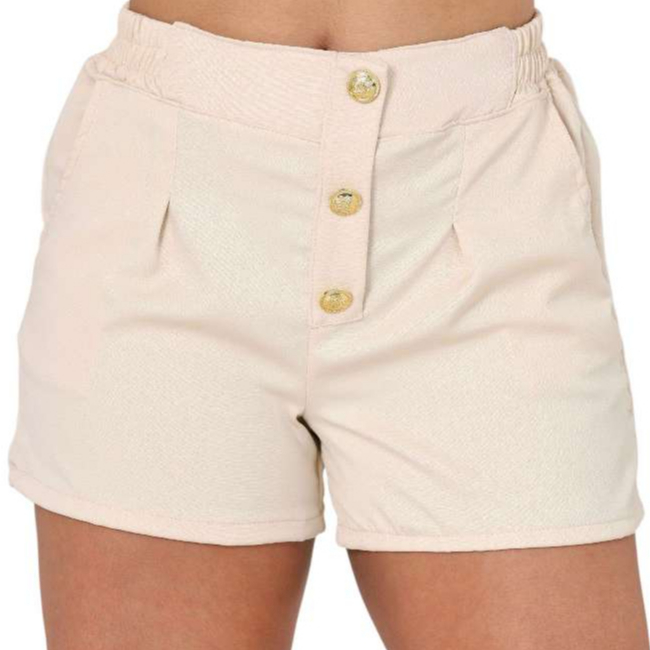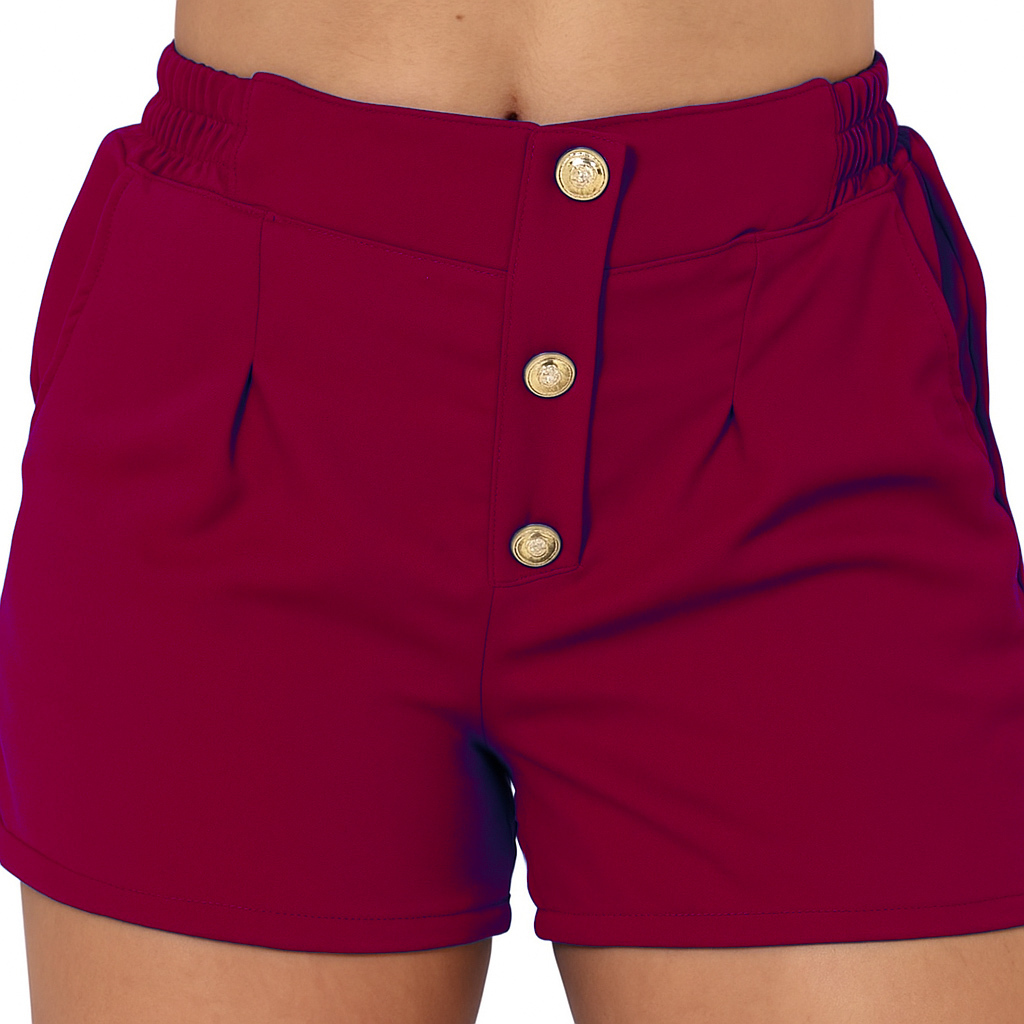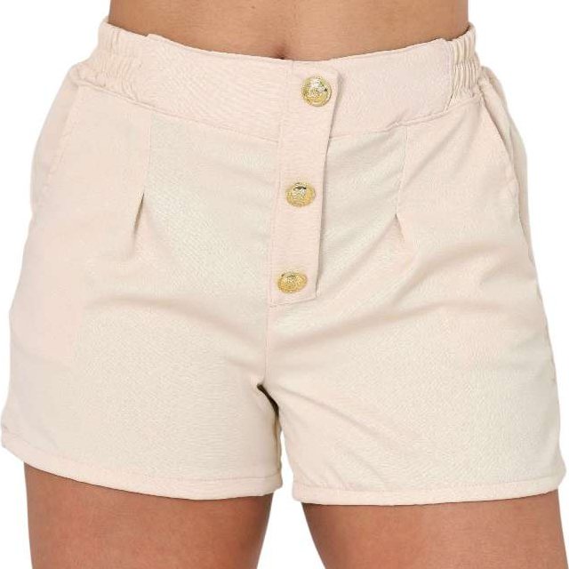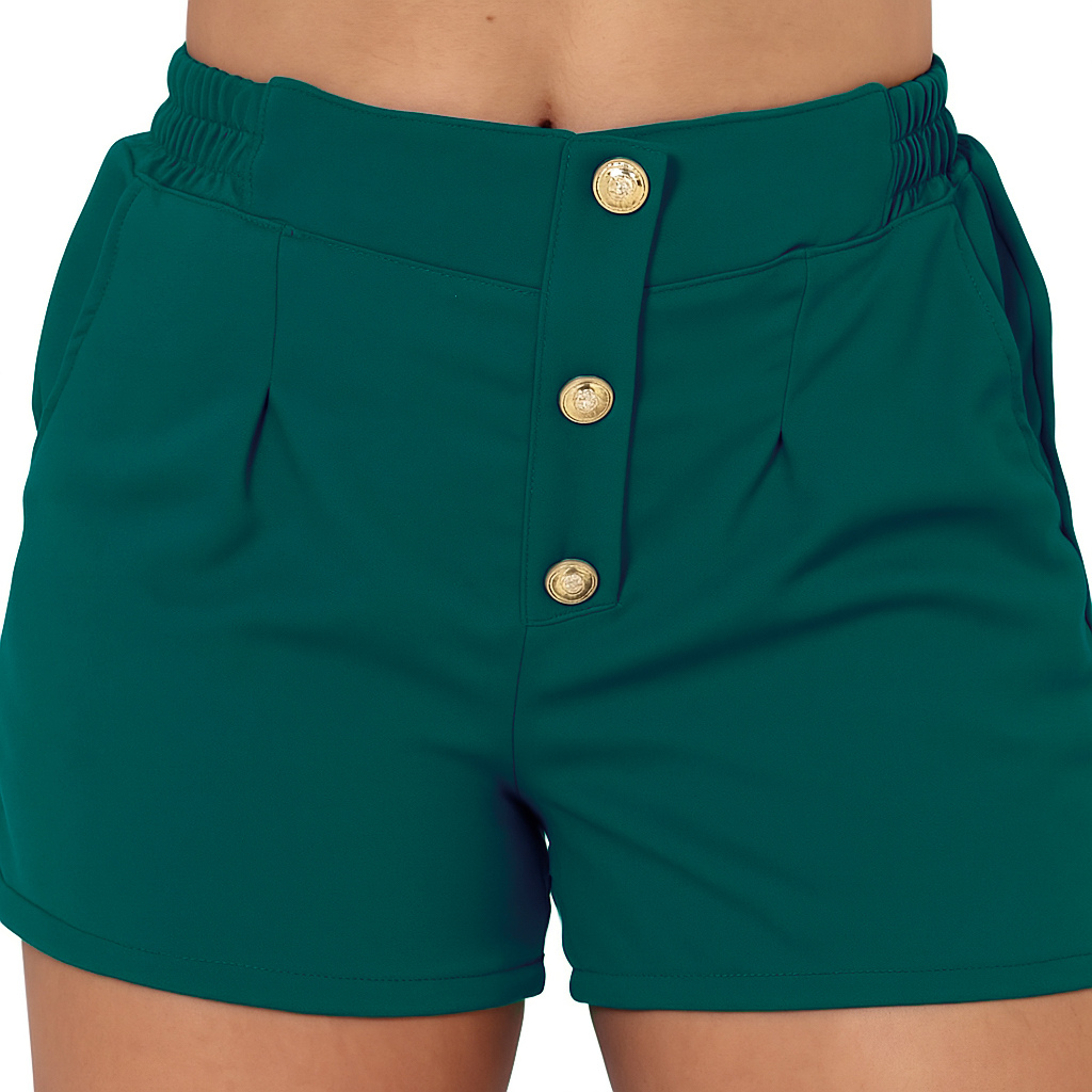 Short Feminino Alfaiataria P ao G3 Plus Size Cintura Alta Botoes Forrado Elastico