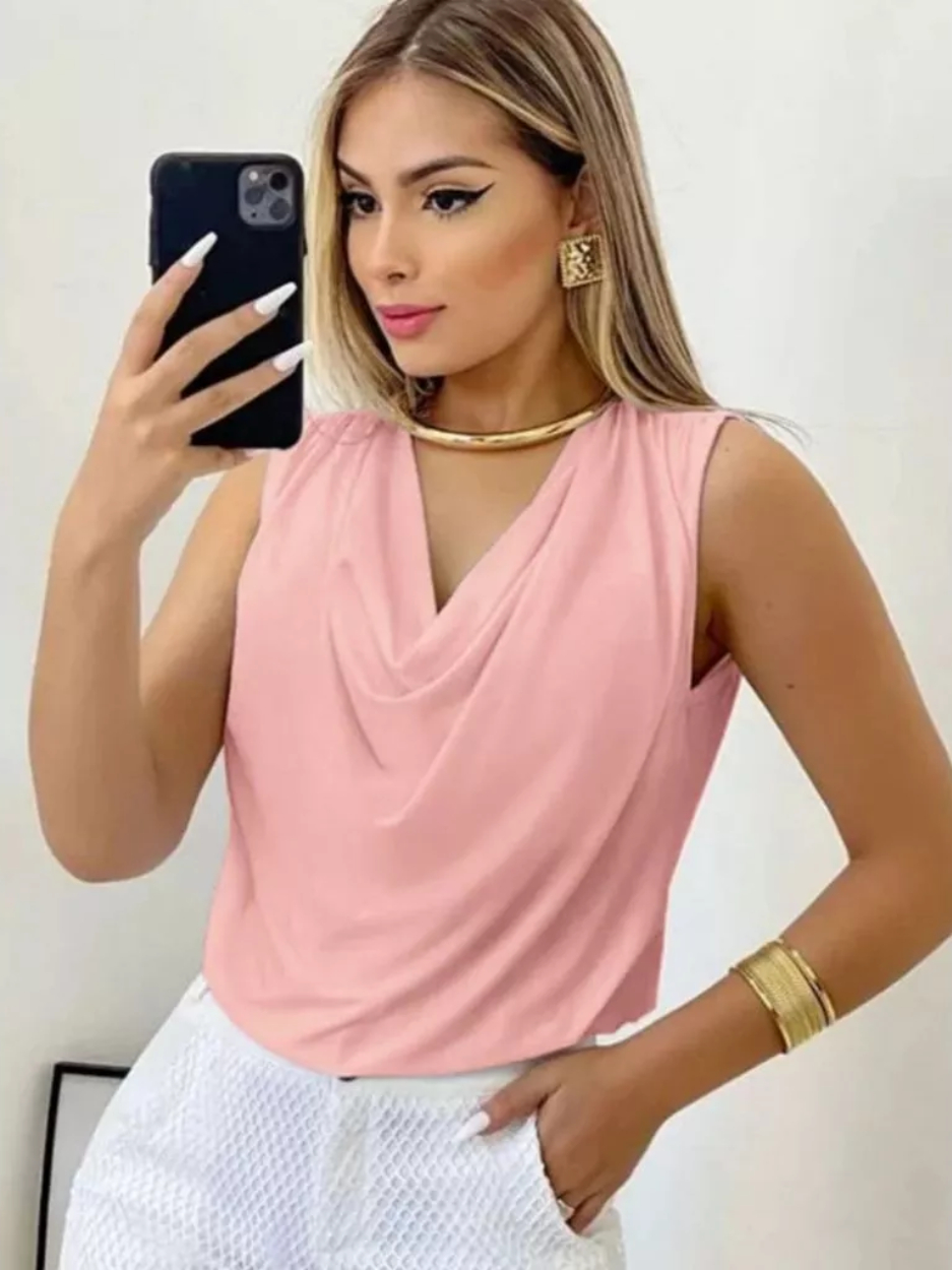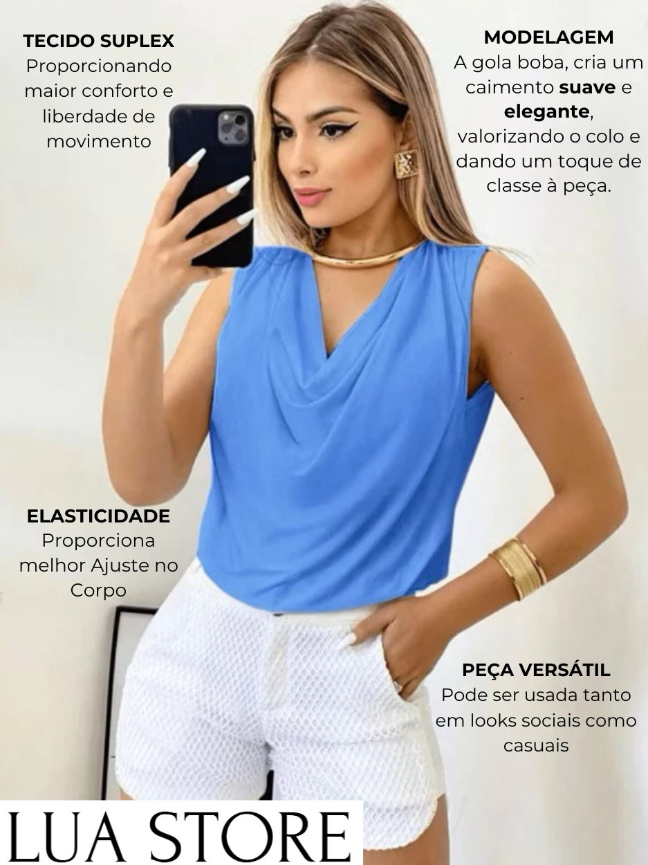 Blusa Feminina Gola Boba Suplex Light Moda Verão Elegante