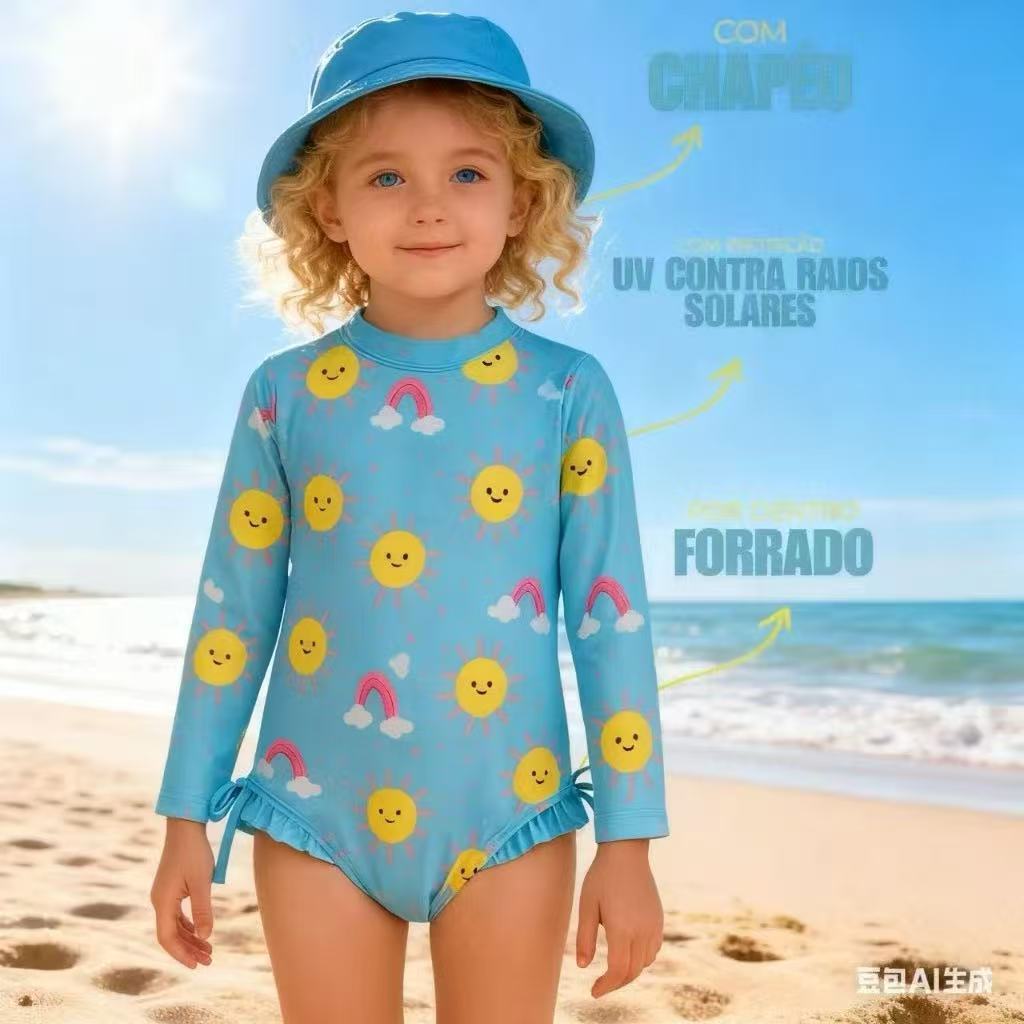 Maiô Infantil Meninas Manga Longa Bebe Com Proteção Uv 50 + 1548-1550-1531
