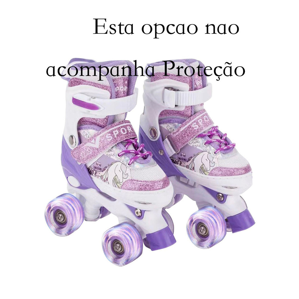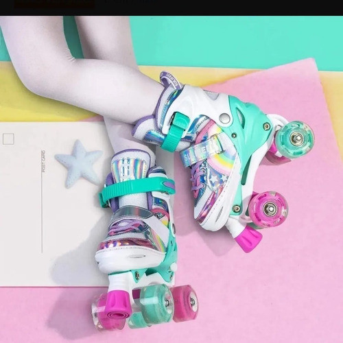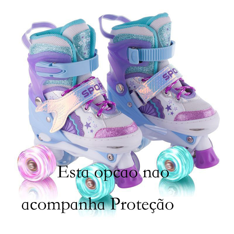 Patins 4 Rodas ARCO ÍRIS Com Luz De Led E Glitter Top