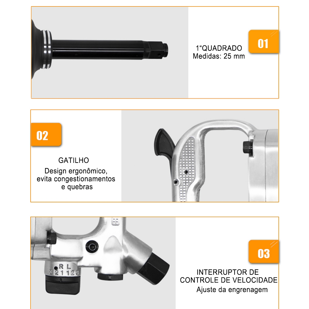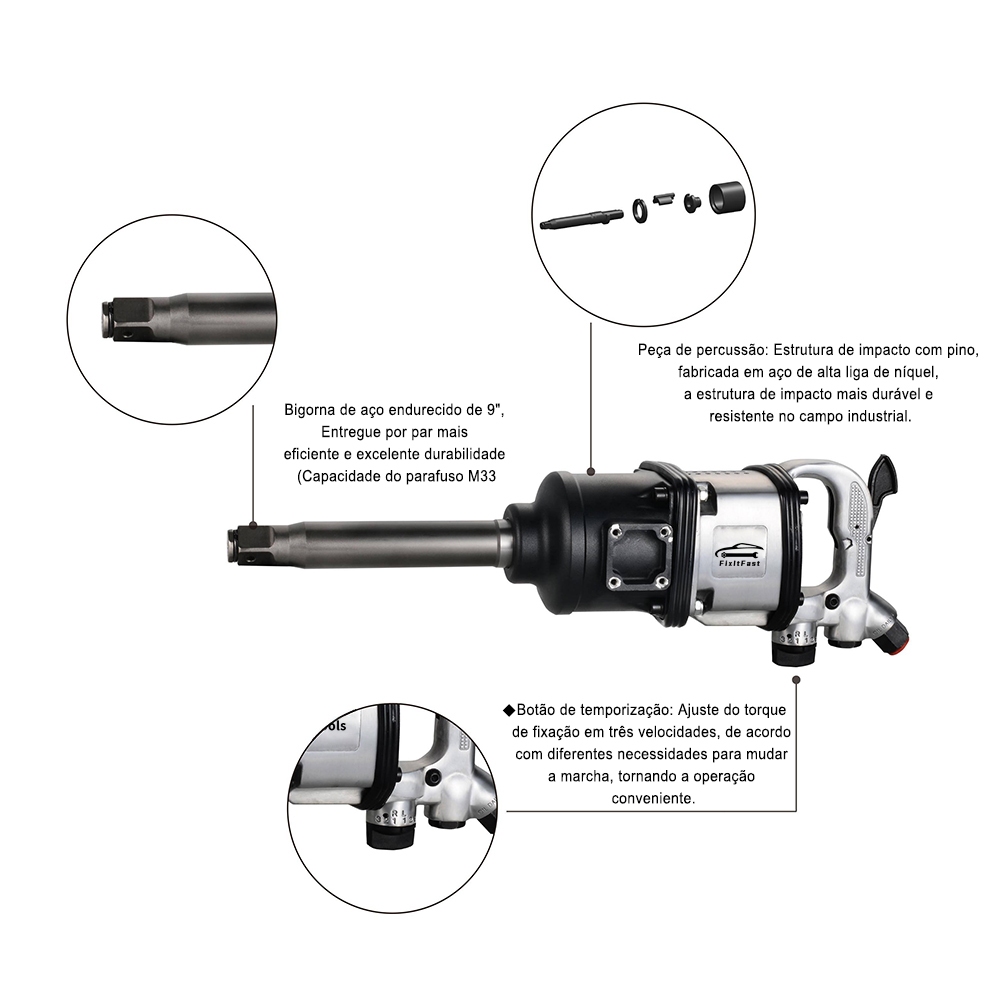 Chave de Impacto Pneumática FixItFast 1" - 2400Nm, 3900RPM, Soquetes 32/33mm, para Reparo Veicular/Industrial