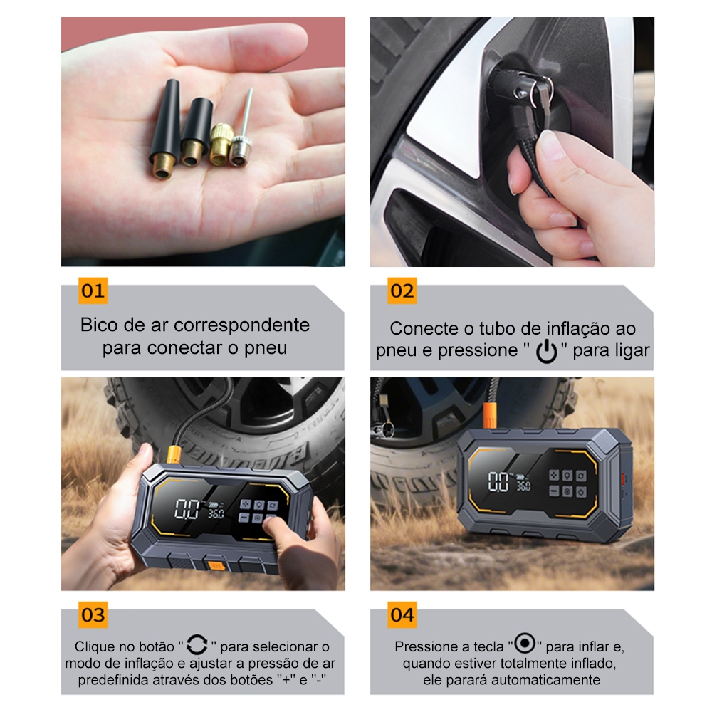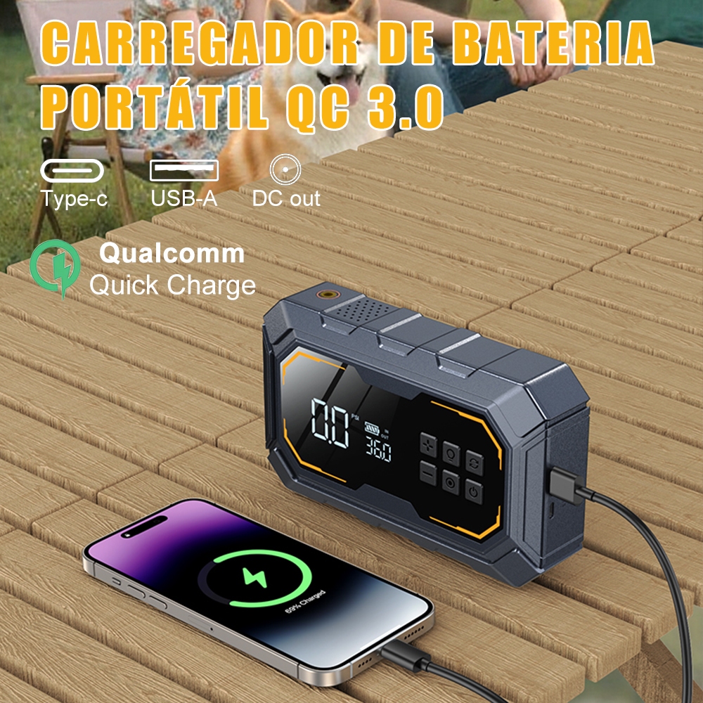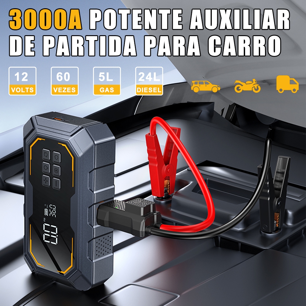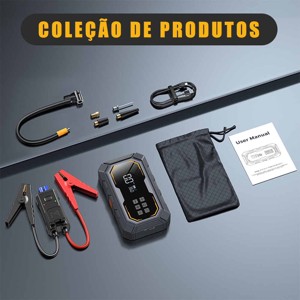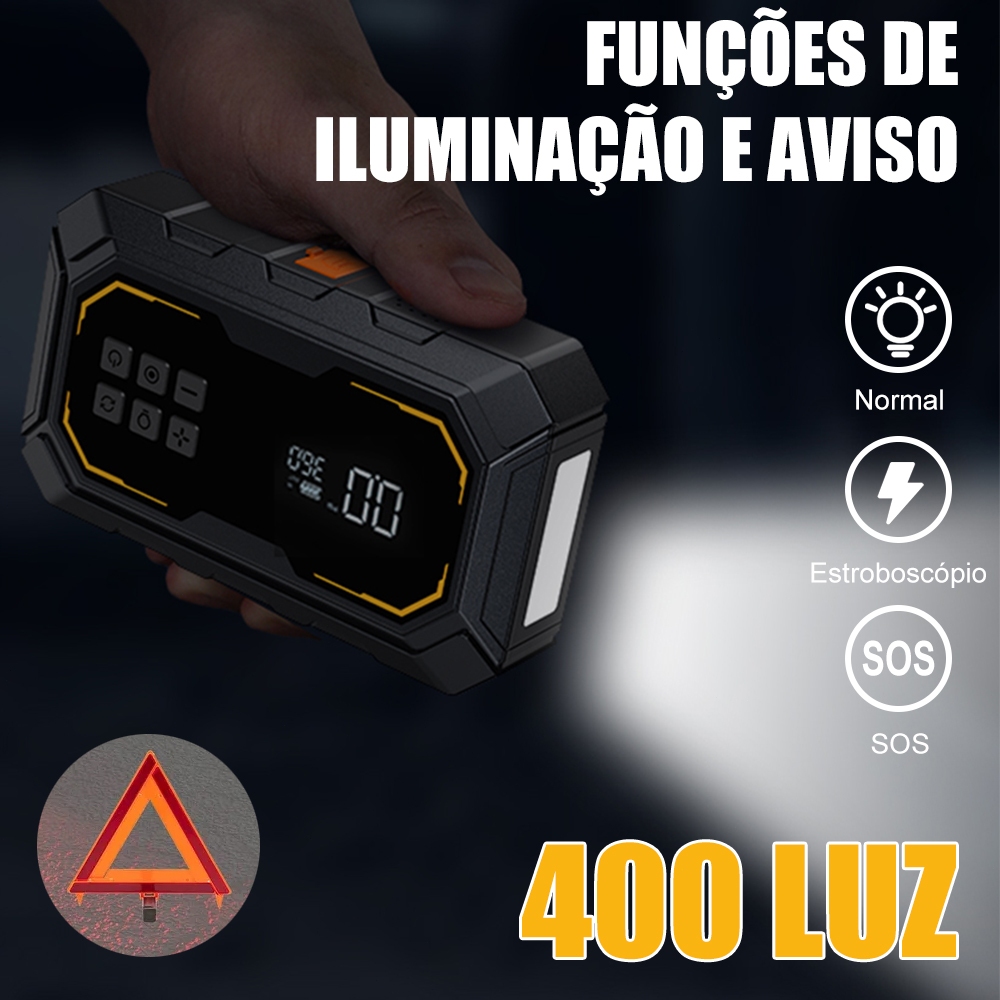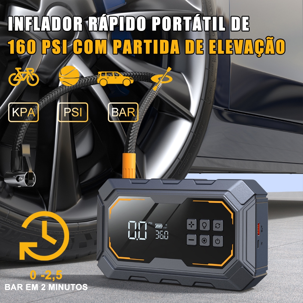 Iniciador de Emergência Veicular 30000mAh - Inflador de Ar 160PSI + Power Bank + Lanterna LED SOS, Multifuncional