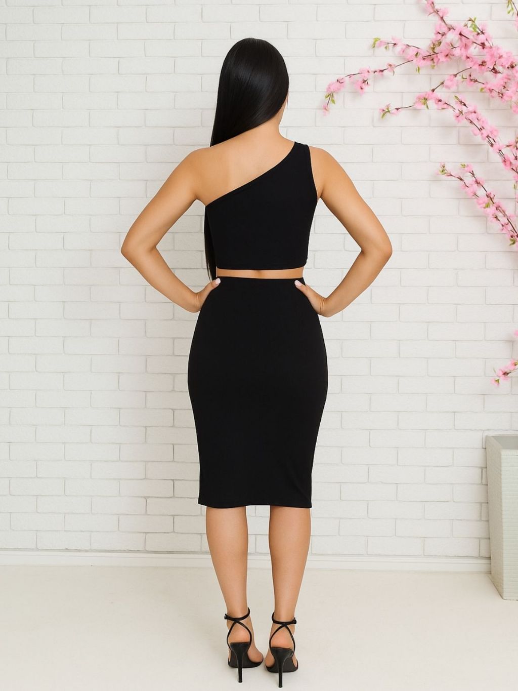 Conjunto Feminino Midi Fenda Cropped Ombro Único Moda Festa Casual Balada Estiloso Sexy