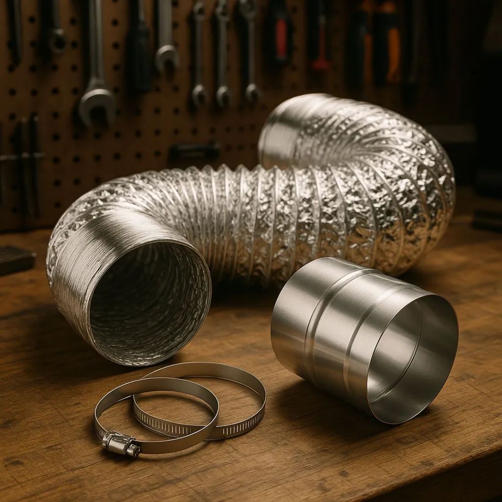 Kit Duto Flexível 150mm 5 Metros Com Luva De União + 2 Abraçadeiras Aço Carbono Para Coifas Exaustor