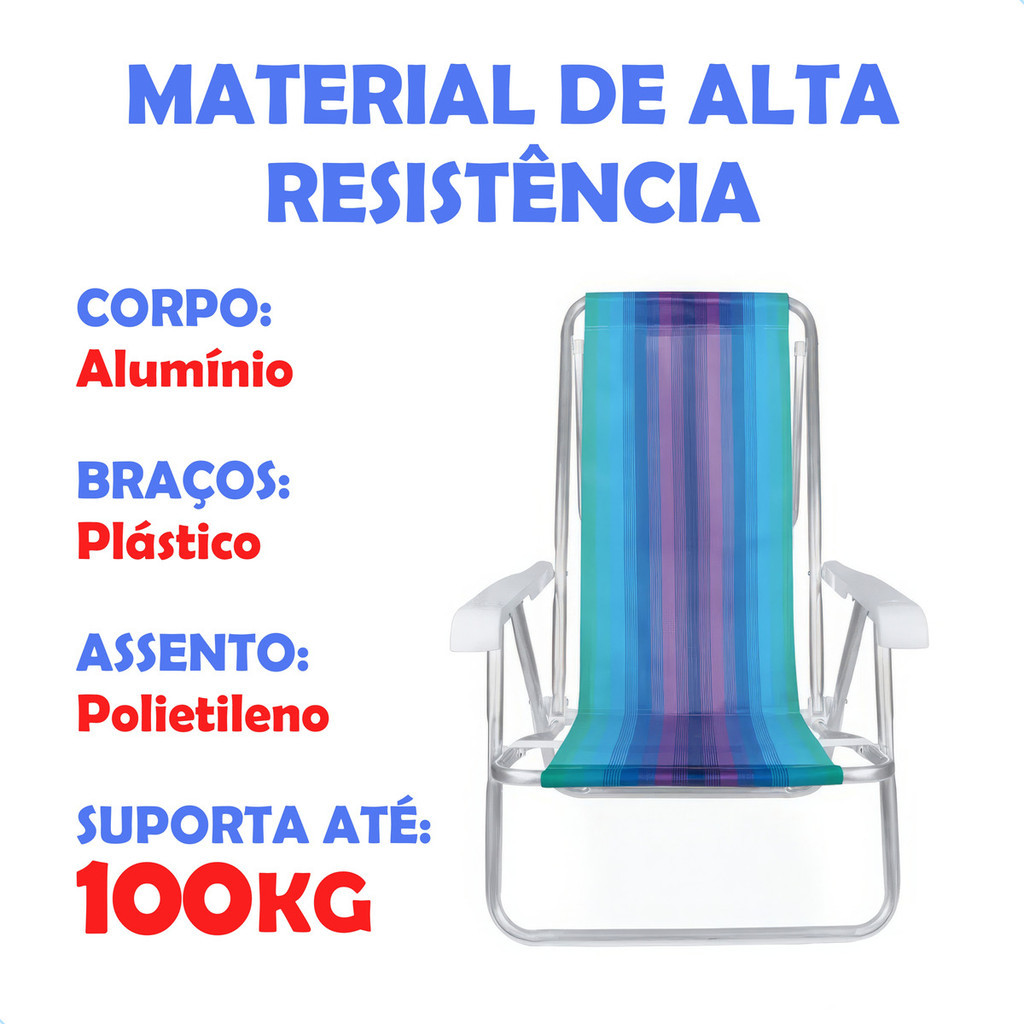 Cadeira De Praia Reclinável 4 Posições Alumínio Resistente Mor Cores Sortidas Não Enferruja