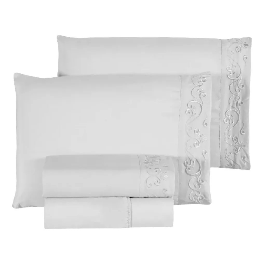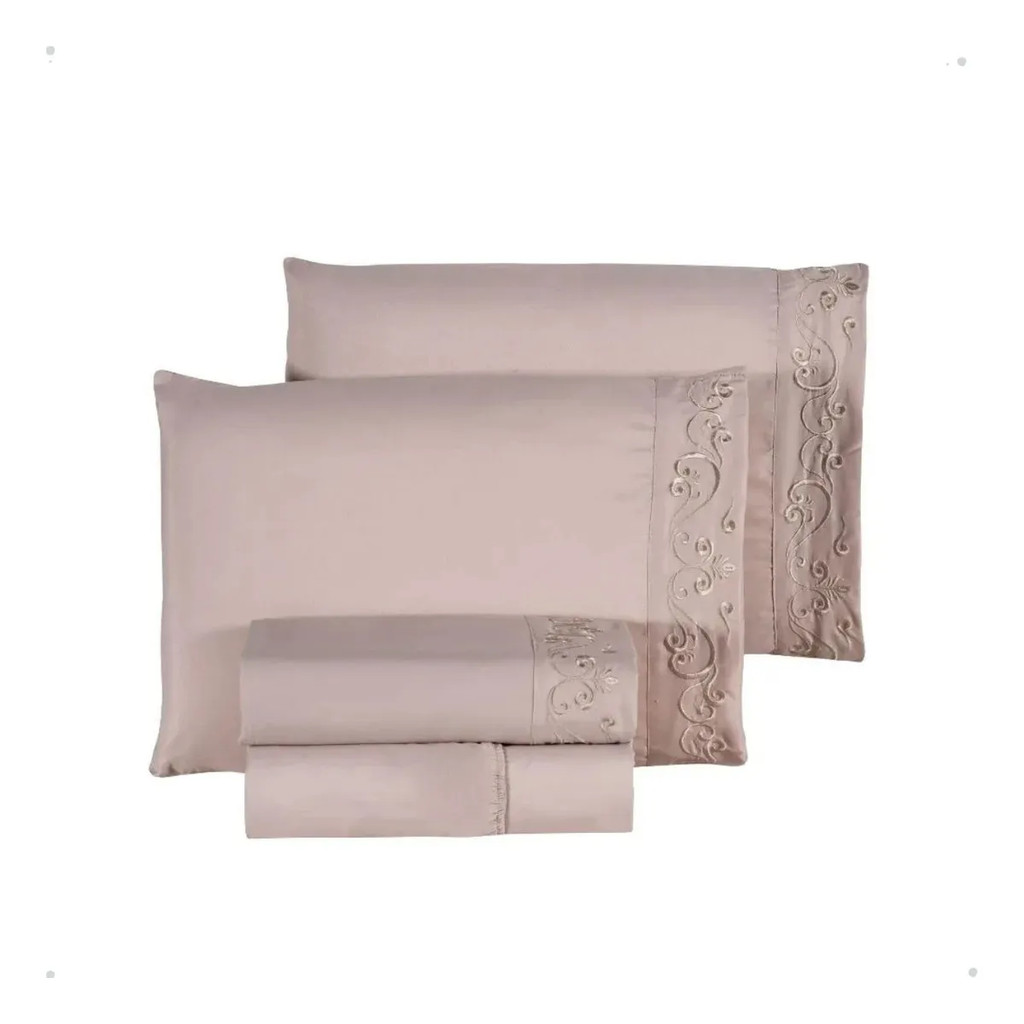 Lençol Bordado Florença Casal 400 fios 4 Peças Microfibra Eurotextil