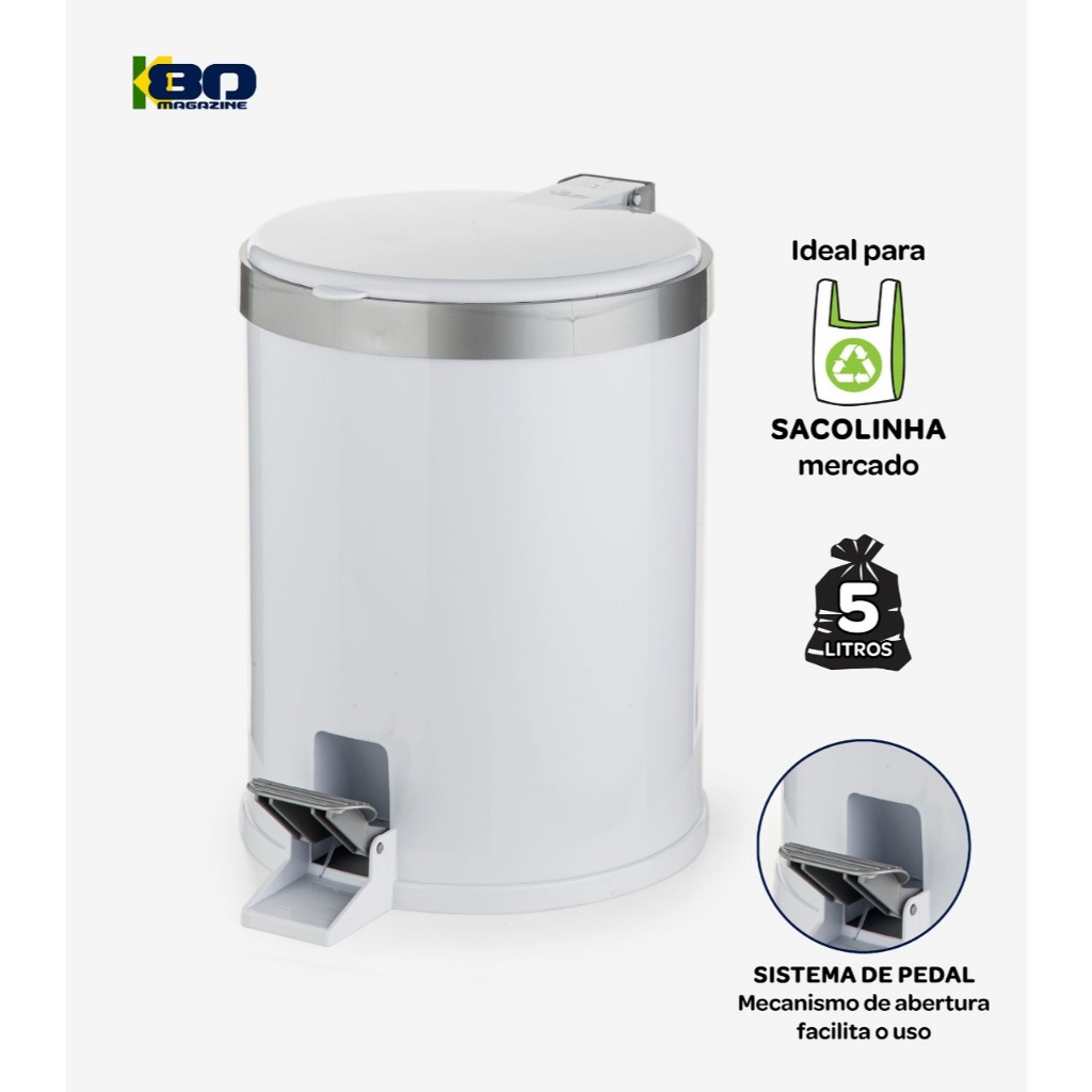 Lixeira Branca Compacta 5 L Pedal Para Banheiro E Cozinha Com Organização Garantida