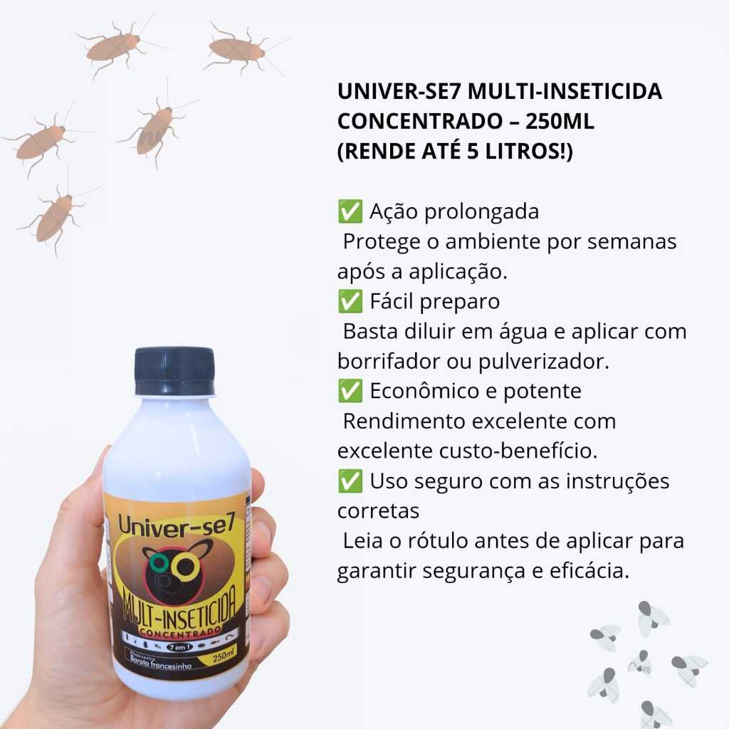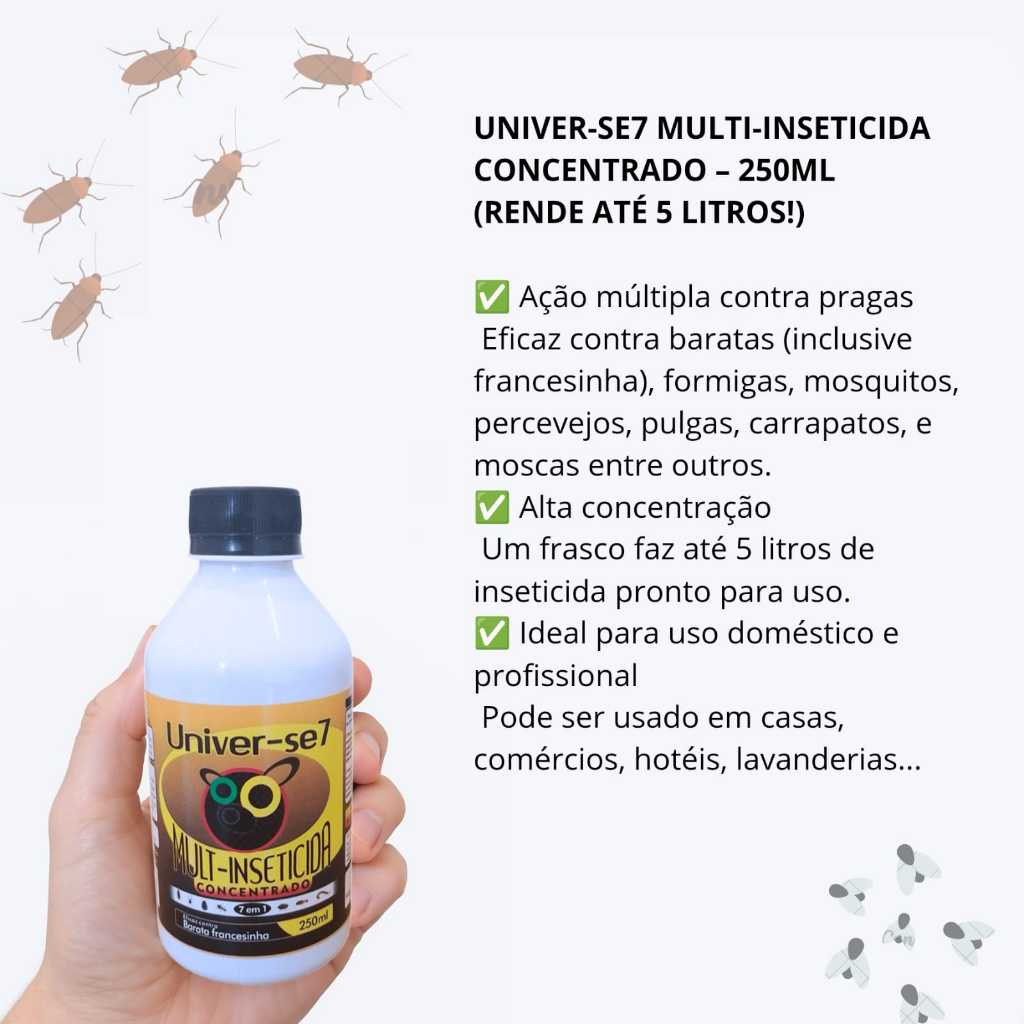 Univer-se7 Concentrado 250ml Faz 6 litros Elimina: Barata Francesinha, Percevejo de cama, insetos