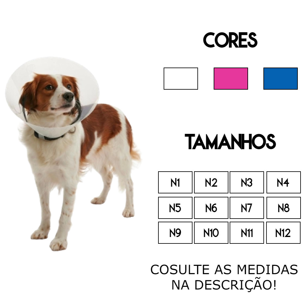 Colar Elizabetano Tradicional Cone Pós Cirúrgico para Cachorro e Gato Tamanho 01 a 12