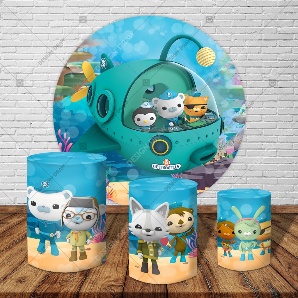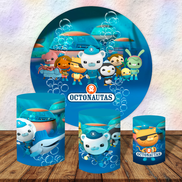 Octonautas + kit painel redondo 1.5m + 3 capas de cilindros