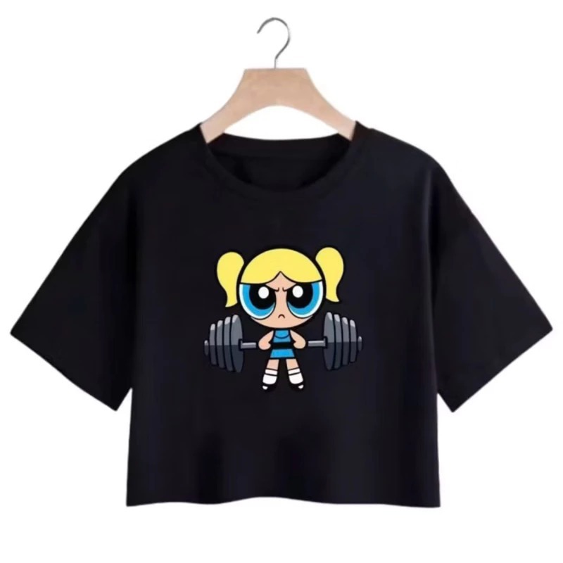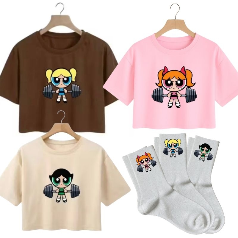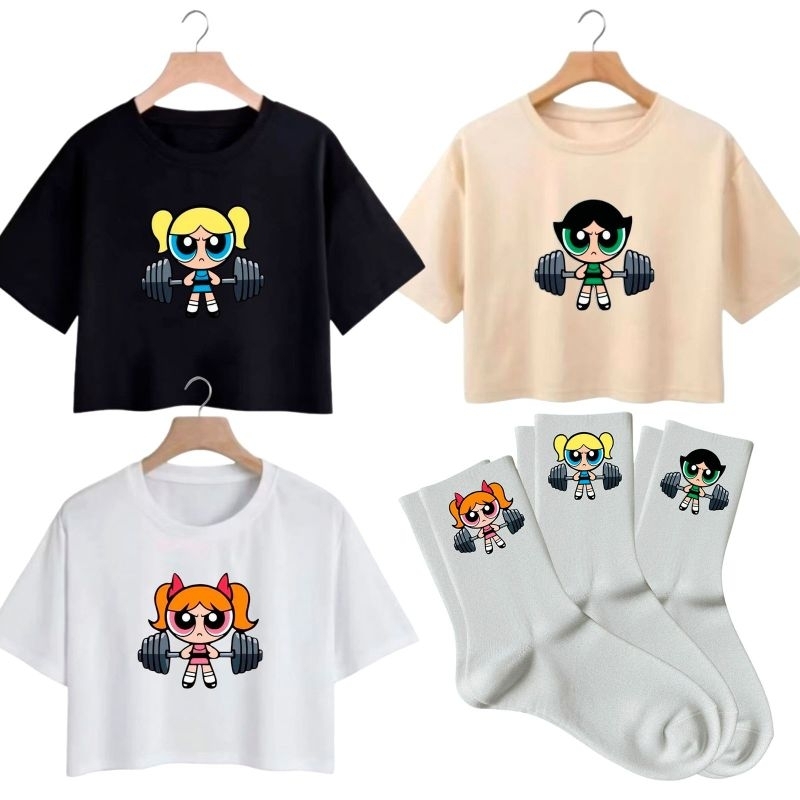 Kit 3 Cropped Feminino Algodão Super Poderosas + 3 Meias Estampadas Academia Lançamento