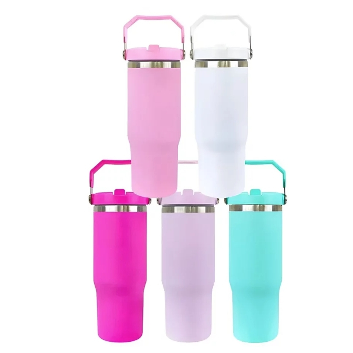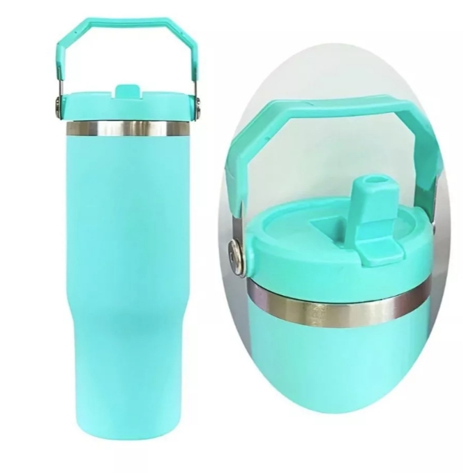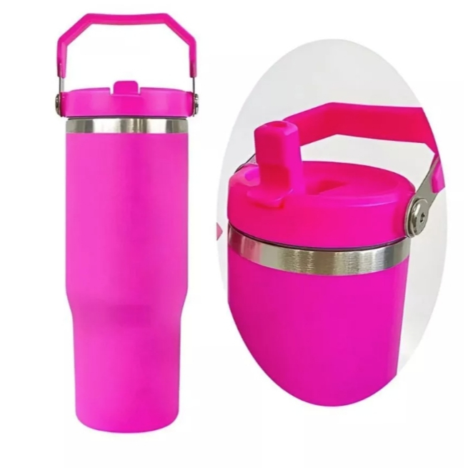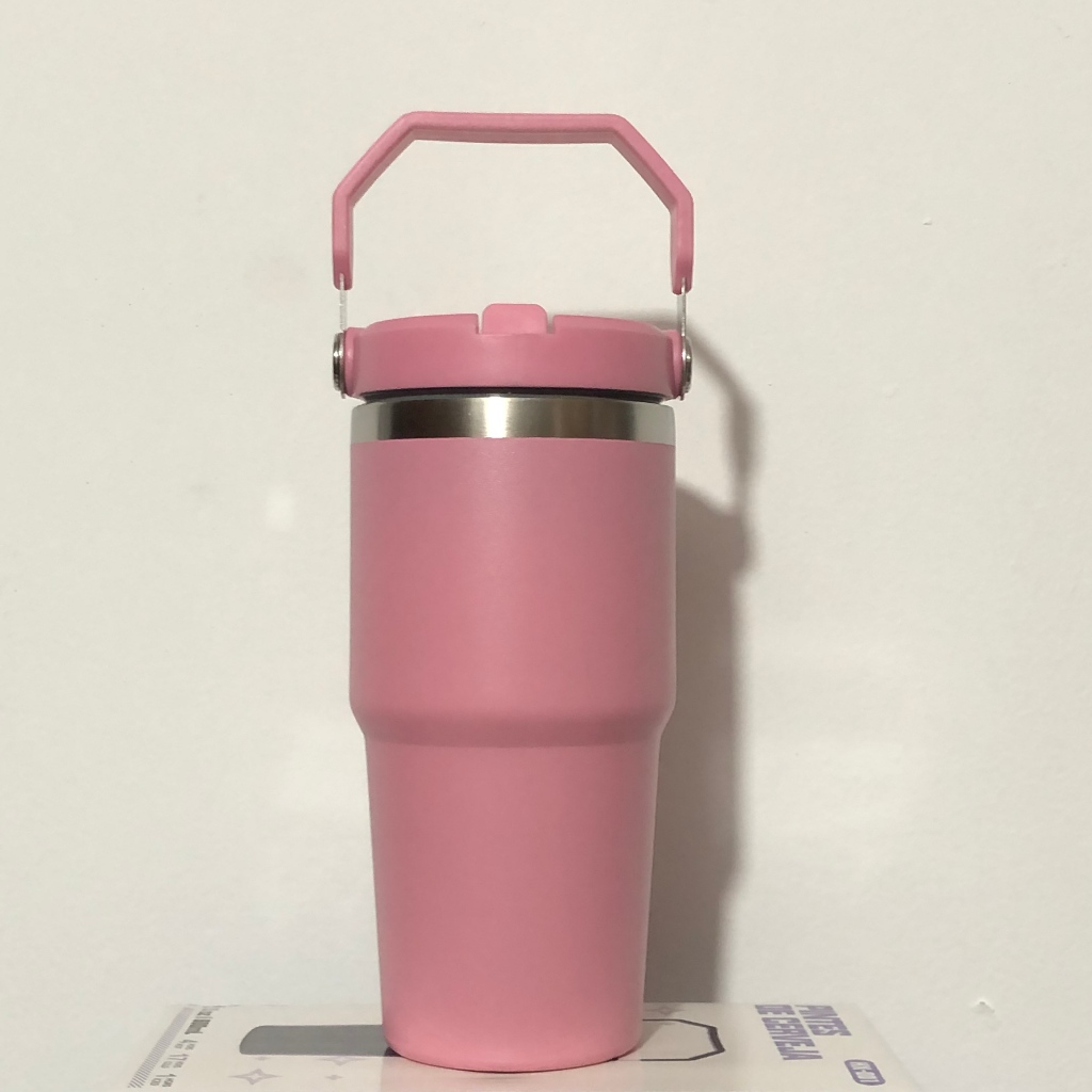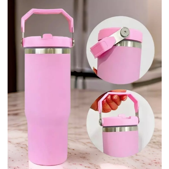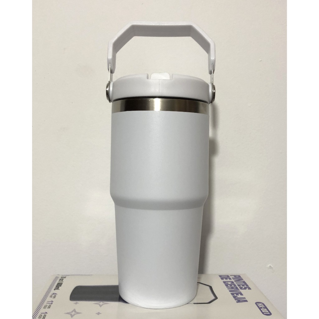 Novo Copo Térmico Inox 600 ml Tampa na Cor do Copo Alça Canudo Térmica Inoxidável Lindo presente