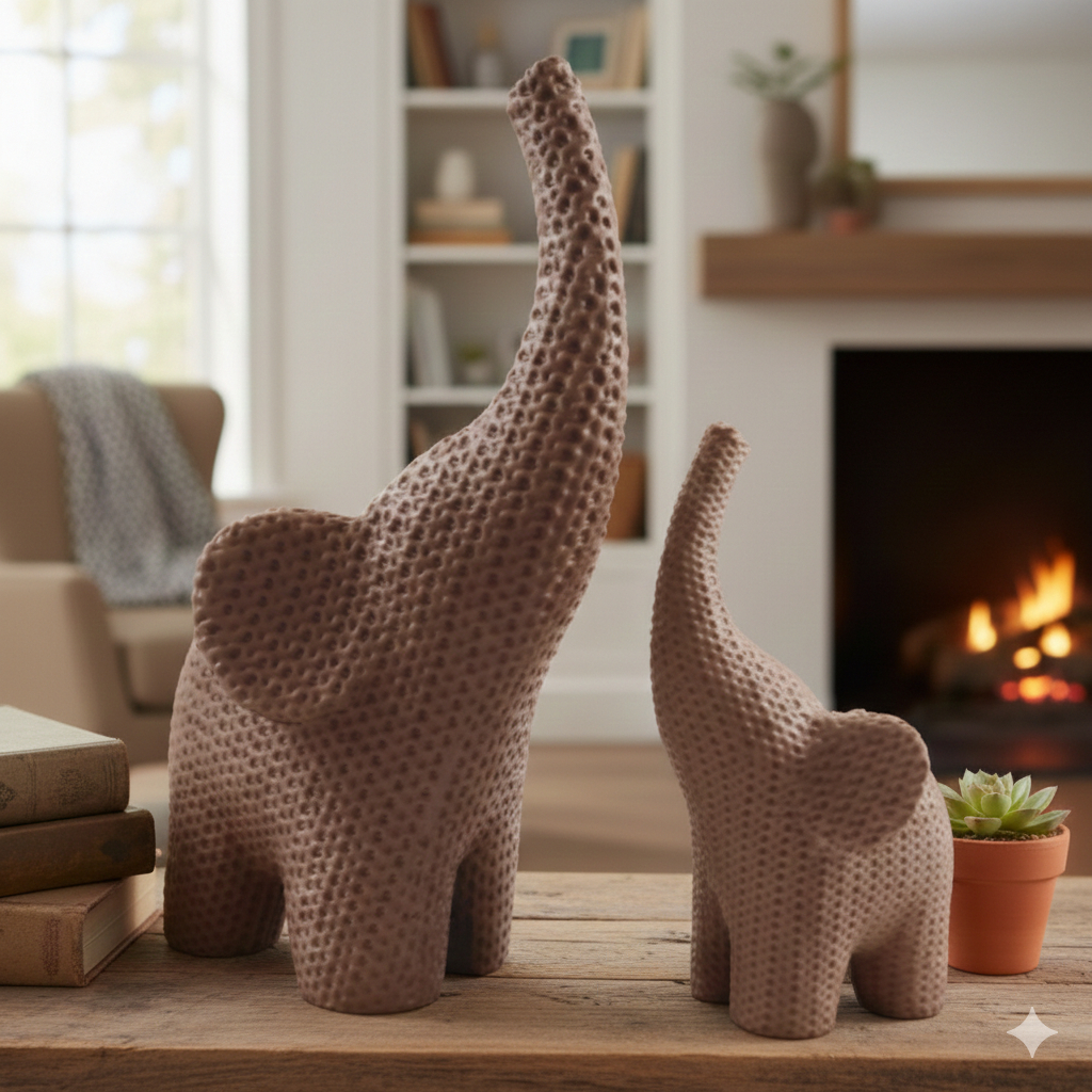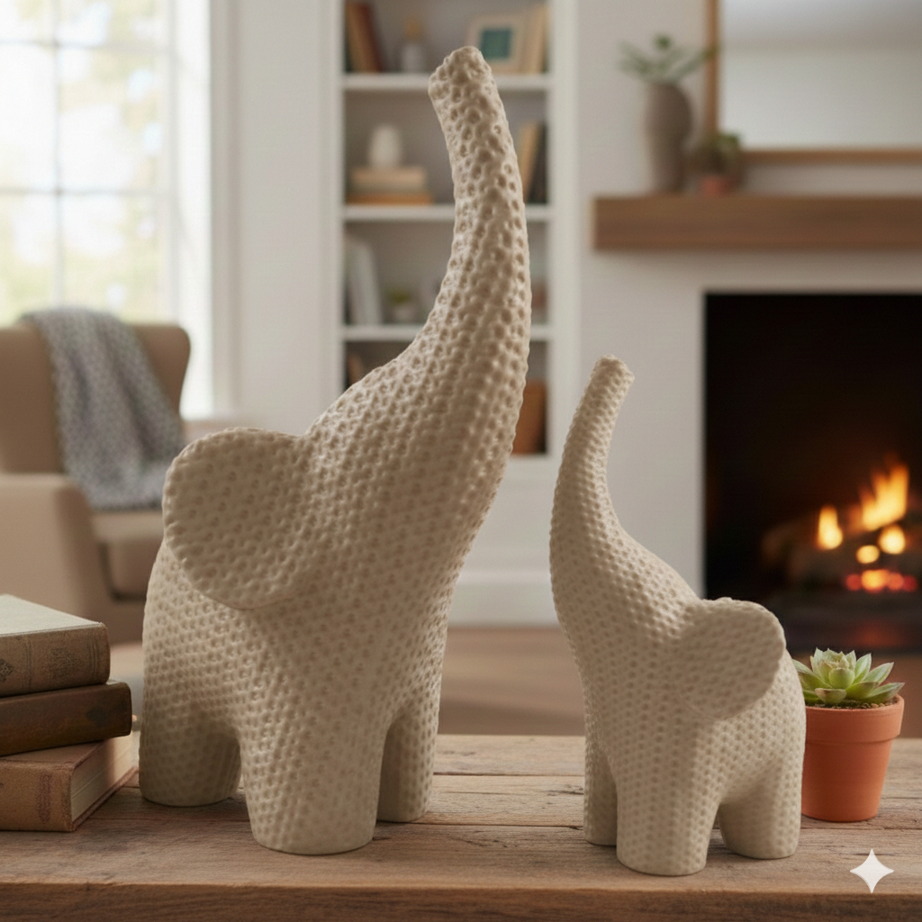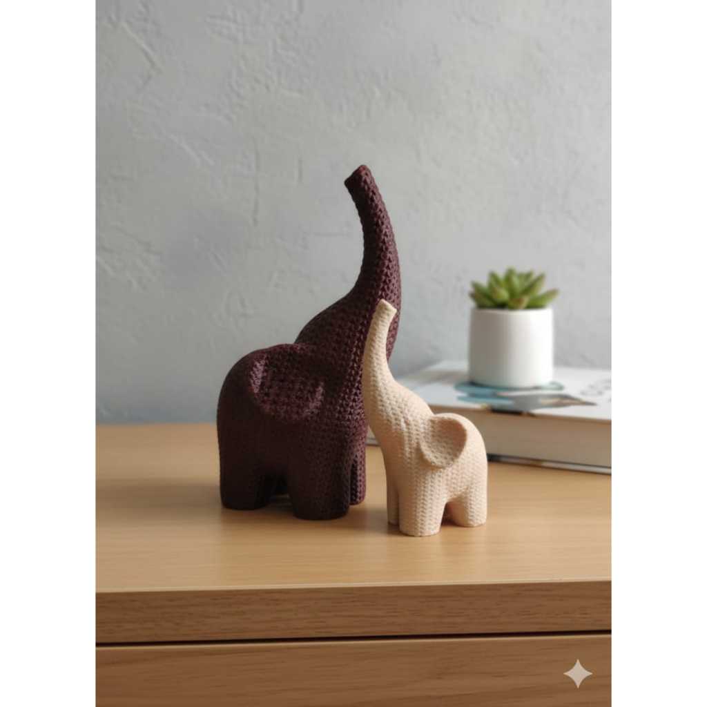 Elefante Decorativo Efeito Crochê – Enfeite de Mesa Artesanal, Presente Criativo e Moderno