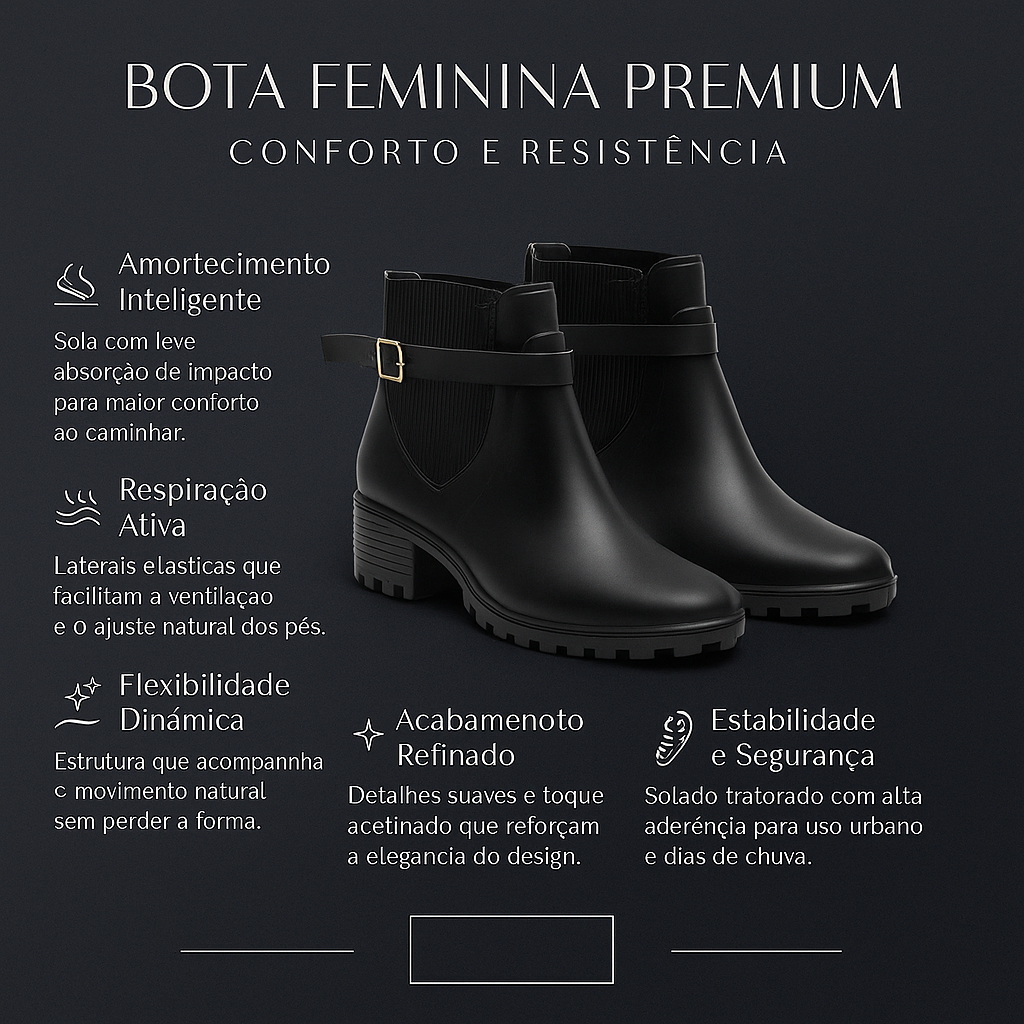 Bota Feminina Inverno Cano Curto Galocha Impermeável Ideal Para Chuva e Frio