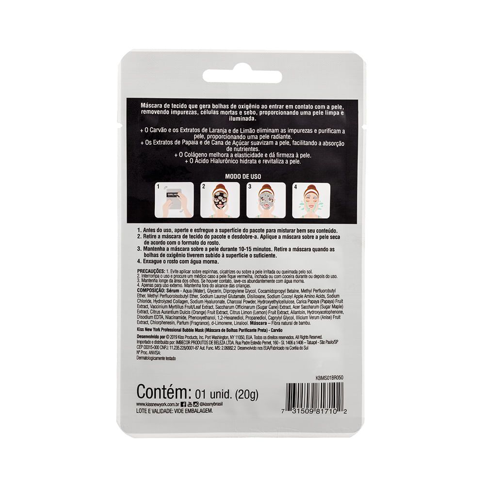 Máscara Facial Kiss New York Bubble Mask Purificante Carvão