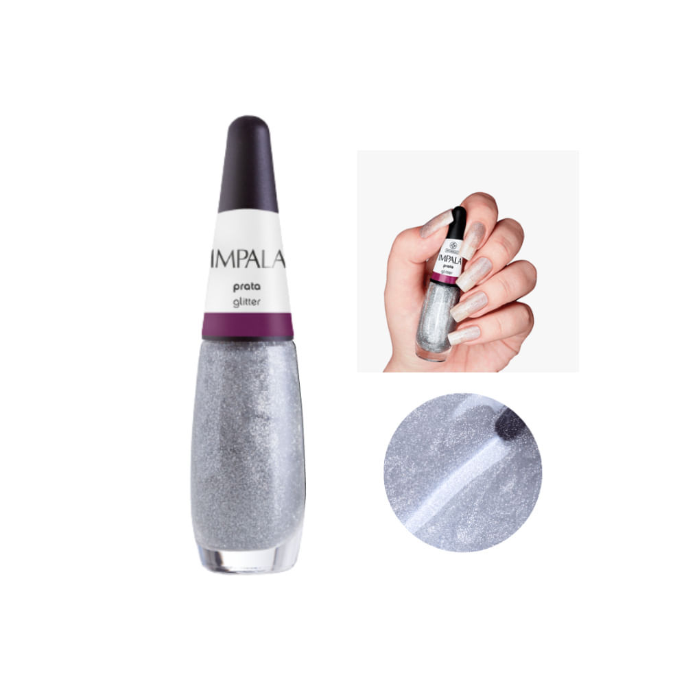 Esmalte Impala Glitter A Cor da Sua Moda Prata