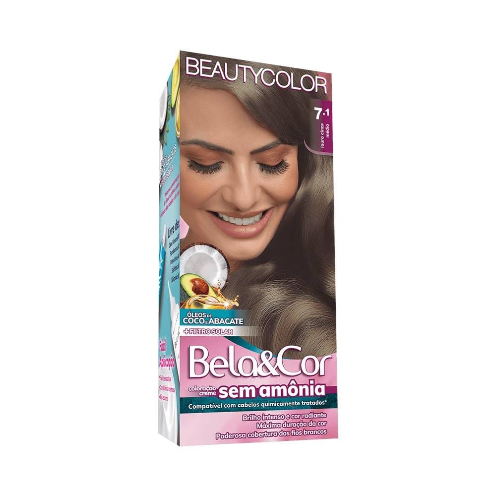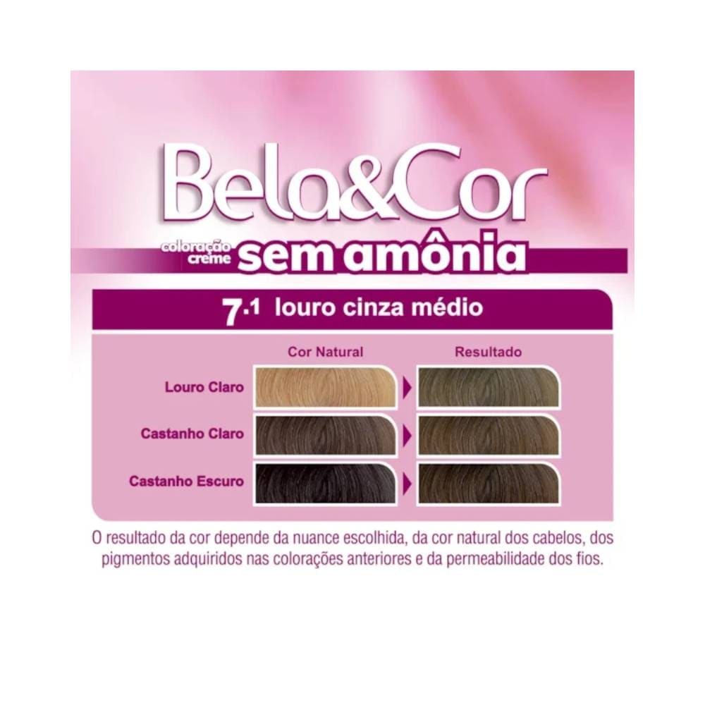 Coloração Bela&Cor Sem Amônia 7.1 Louro Cinza Médio