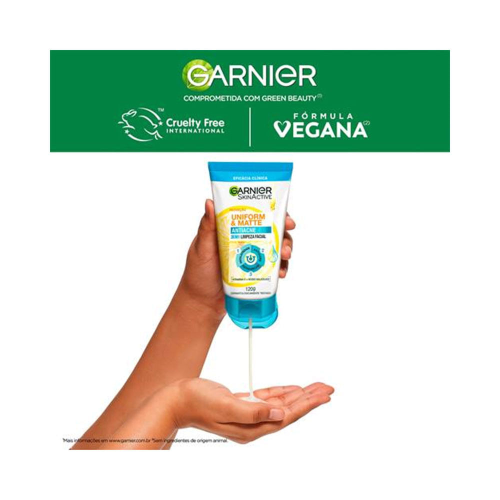Sabonete Facial 3 em 1 Garnier Skin Uniform & Matte Antiacne 120g