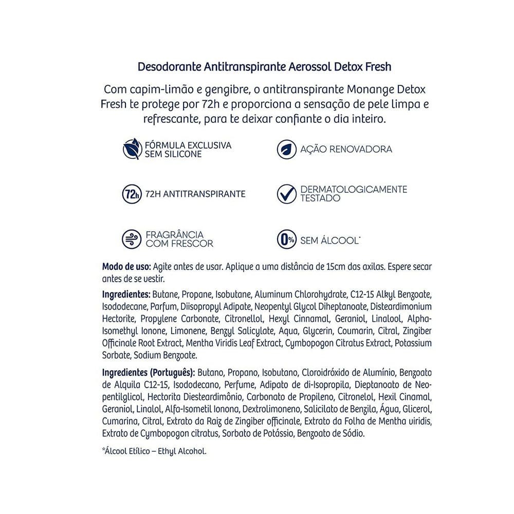 Desodorante Aerosol Monange Detox Fresh 150ml