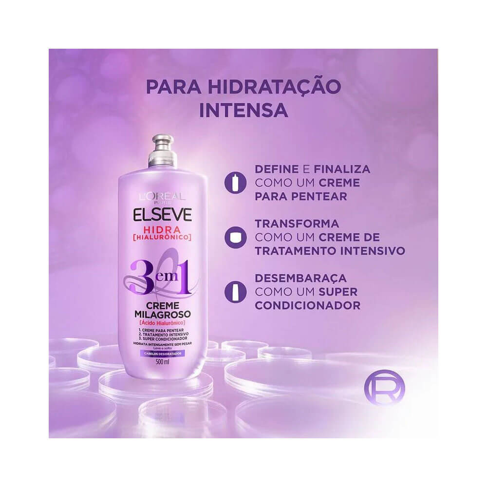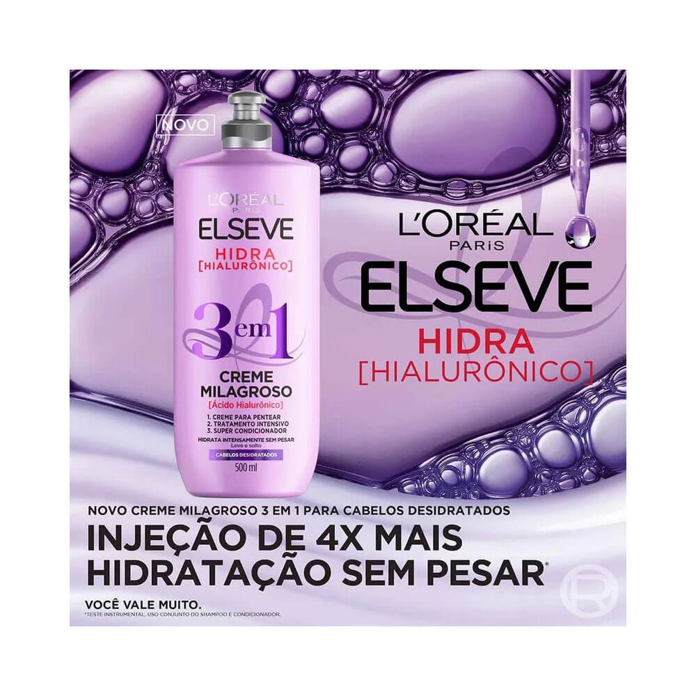 Creme Milagroso Elseve Hidra Hialurônico 3 Em 1 500ml