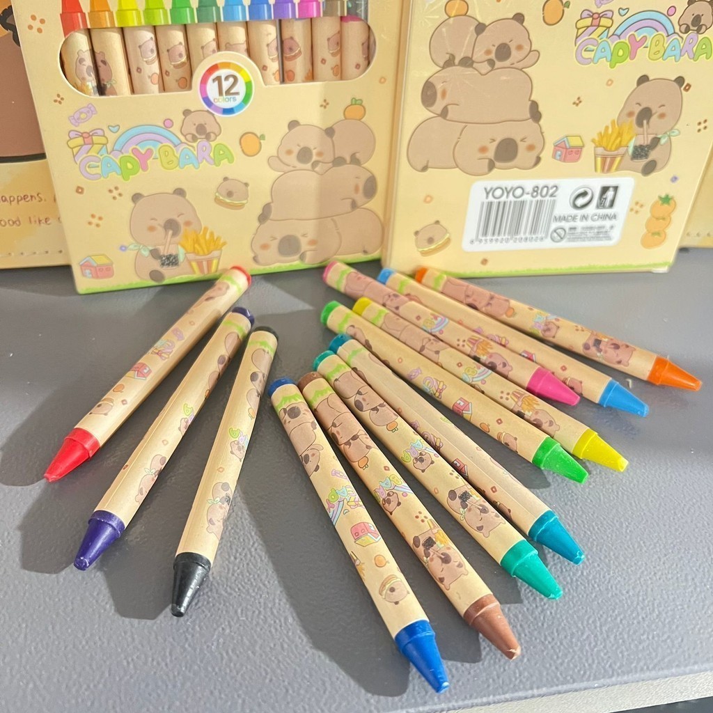 Giz De Cera Capivara Com 12 Cores Lápis 8.8cm Colorido Pintura
